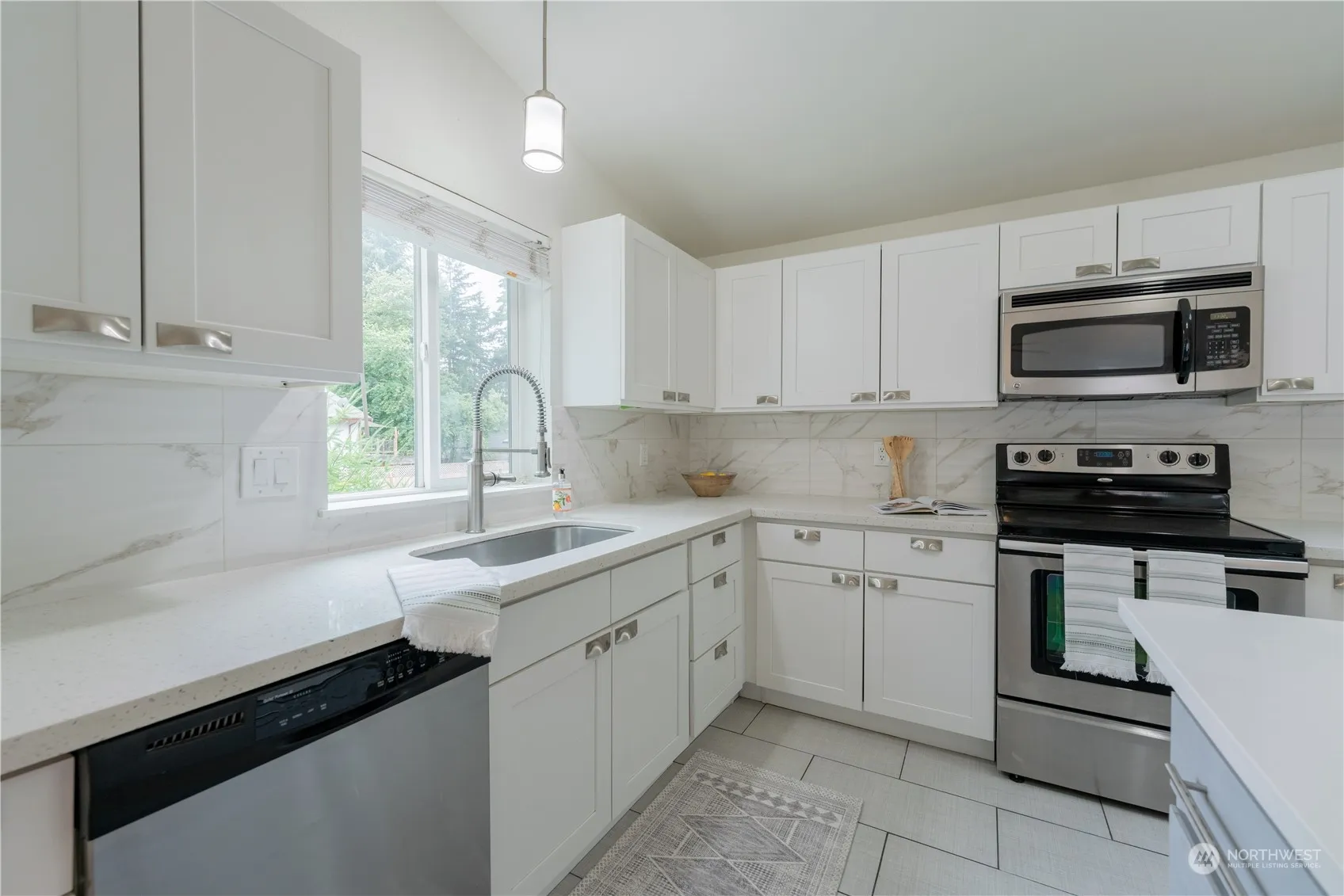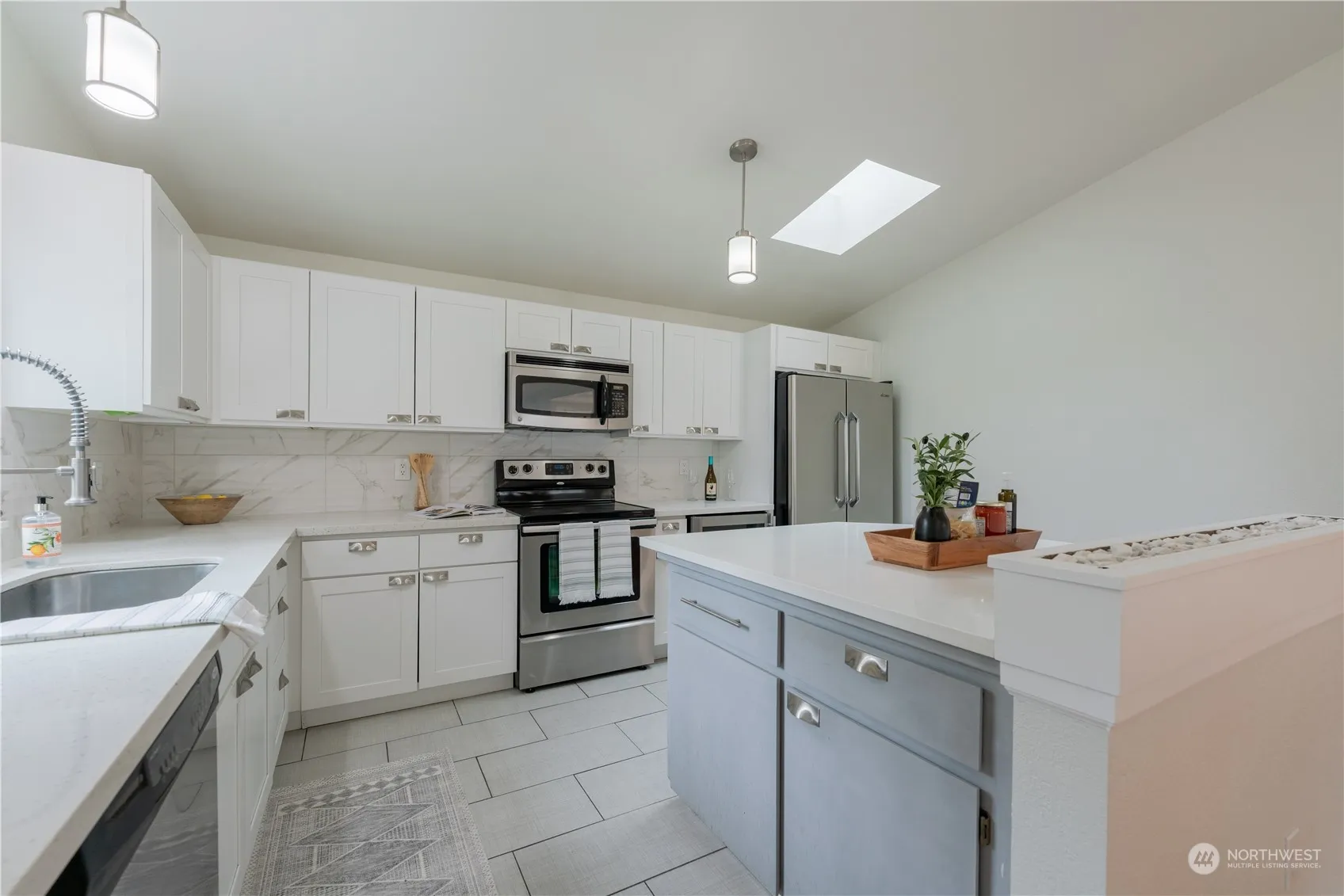 Elegantly updated home featuring 3 bedrooms, 1.75 baths, fresh interior paint, and stylish design accents throughout. The bright, open floor plan is enhanced by vaulted ceilings, a skylight, and beautiful hardwood floors. The modern kitchen boasts solid wood cabinets, an island/breakfast bar, quartz countertops, and stainless steel appliances, including a wine fridge. The spacious family room opens to a patio and a fully fenced backyard. This home also includes a two-car garage and is located on a quiet, no through-traffic street, yet close to shopping, less than ten mins to Chambers Bay & Cirque Park, and major thoroughfares. Plus, it’s in the desirable University Place School District! $2,900 monthly rent, security deposit of $2900
