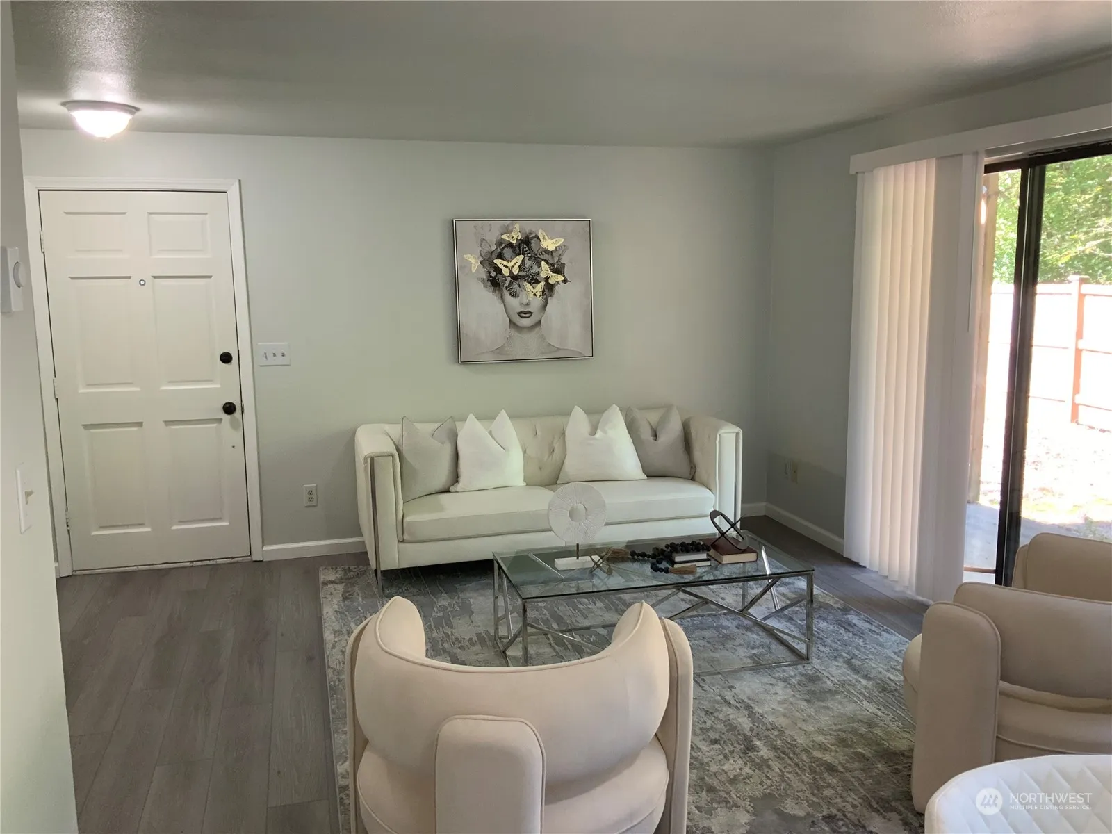 Welcome home! This remodeled 2 bed, 1 bath ground floor end unit home offers exceptional value & charm while featuring all new kitchen cabinets, countertops, sinks, LVP flooring, fridge, dishwasher, stove/oven, microwave, washer and dryer, hot water heater, forced air heaters, bath sinks & cabinets, countertops, tub & toilet. Also a 4 x 8 storage storage unit, 1 covered & 1 uncovered designated parking space. Come & be a part of Kobuk’s small 16 unit community where you will experience low maintenance living while being close to shopping centers: Costco, Fred Meyers, Safeway, schools and I-5. Unfurnished & move-in ready.