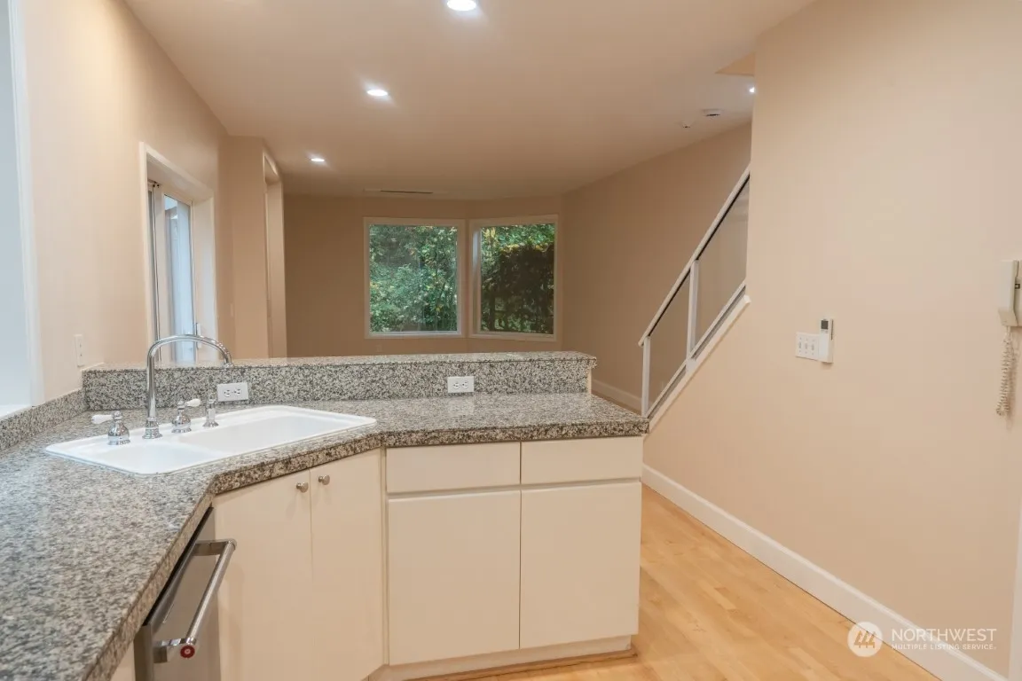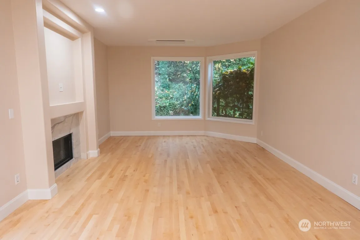 Desirable Mercer Island Townhome with A/C. An exceptional 2 bedroom with quality finishes throughout. Brand New Paint, flooring and fireplace! Spacious kitchen with open concept main floor and a private deck off living room. Upstairs are main bedroom with en-suite. Laundry room and additional bedroom with 2nd full bath. W/S/G included along with 2 designated indoor garage parking spaces with electric car charger.( tenant will be billed for the electricity used by HOA). close to I-90, bus and future light rail. Main bedroom blinds are on order.