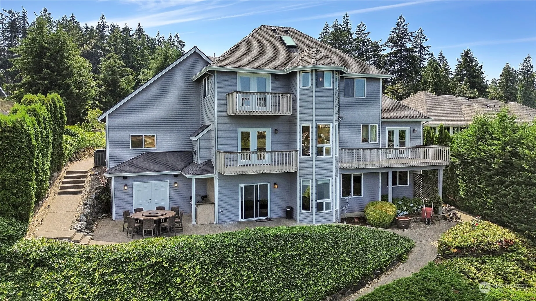 97′ of Lake Tapps Waterfront! This 4,086 sqft home, perfect for water enthusiasts, features 4 beds + den, & 3.5 baths. Dock, boat lift w/ cover, jet ski lift, & easy lake access. The home boasts a newer 50-year roof, hardwood floors, & a gourmet kitchen w/ SS appliances, a new range hood, quartz countertops, walk-in pantry, & a central vac system. The family room opens to a deck, ideal for entertaining. Upstairs, find 3 bedrooms, a full guest bath, a bonus room/gym, & a luxurious primary en-suite w/ heated bathroom floors, a private deck, & a humongous walk-in closet. The lower level offers a M-I-L 2nd kitchen, a 4th bdrm, full bath & rec room. 3-car garage w/ Tesla charger is a MUST SEE!