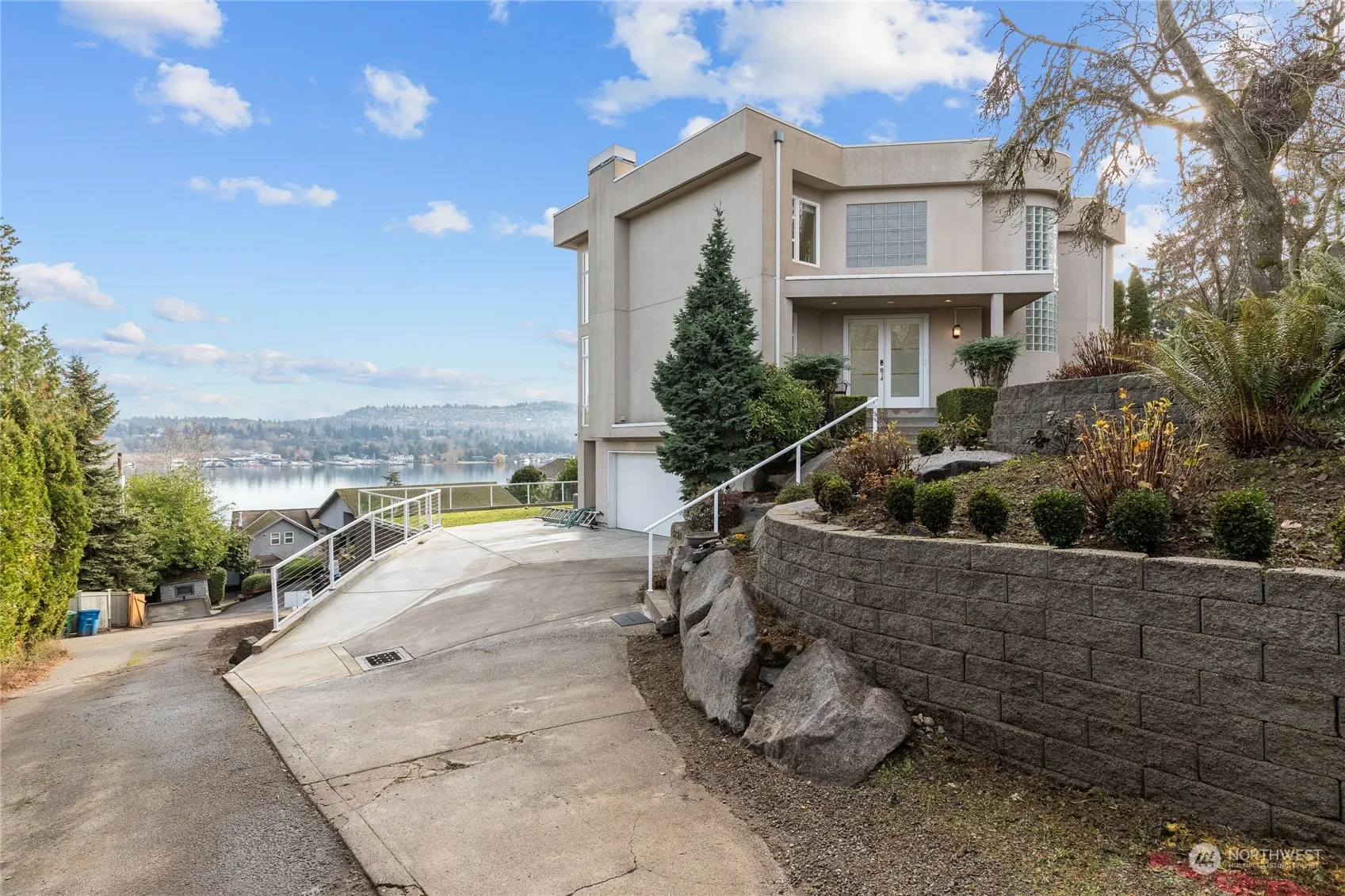 Experience breathtaking views from every room in this open, light-filled contemporary home! Featuring 4 bedrooms and 3.25 baths, this freshly painted gem boasts floor-to-ceiling windows, a spacious living and dining room, and a large kitchen with Quartz counters, SS appliances, & 4-burner gas cooktop. Double doors lead to expansive deck—perfect for entertaining. The nicely sized Primary En-suite offers a cozy gas fireplace & stunning views. Upstairs includes 2 bedrooms+a bonus loft/office. The lower level features a rec room with a full bath. Amenities include A/C, an electric car charger, security, sprinkler systems, and yard service. Mature landscaping and proximity to the JCC, Shorewood Club, bike paths, I-90, and downtown Mercer Island.