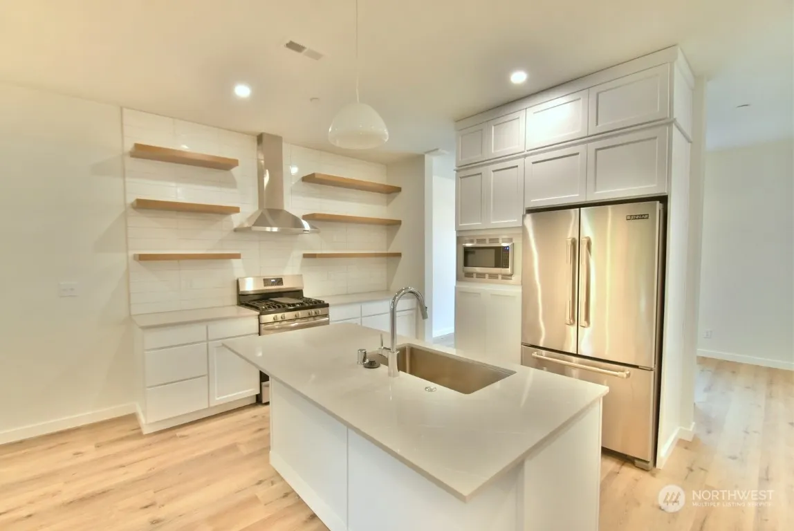 Welcome to Main Brook Townhomes! Beautiful 3 bed/2.5 bath townhome on 3 levels. Enter to the open foyer with a tandem garage and a quiet office/workout space. Up the stairs you will find an open concept living room and gas fireplace next to the gourmet kitchen featuring quartz counters, full tile backsplash, open shelving & SS appliances. Separate dining room or office space. Small main floor deck. Top floor has a main bedroom with a large, walk-in closet and en-suite bathroom. 2 additional bedrooms and the laundry room. This home is stunning and just waiting for you! Avail now