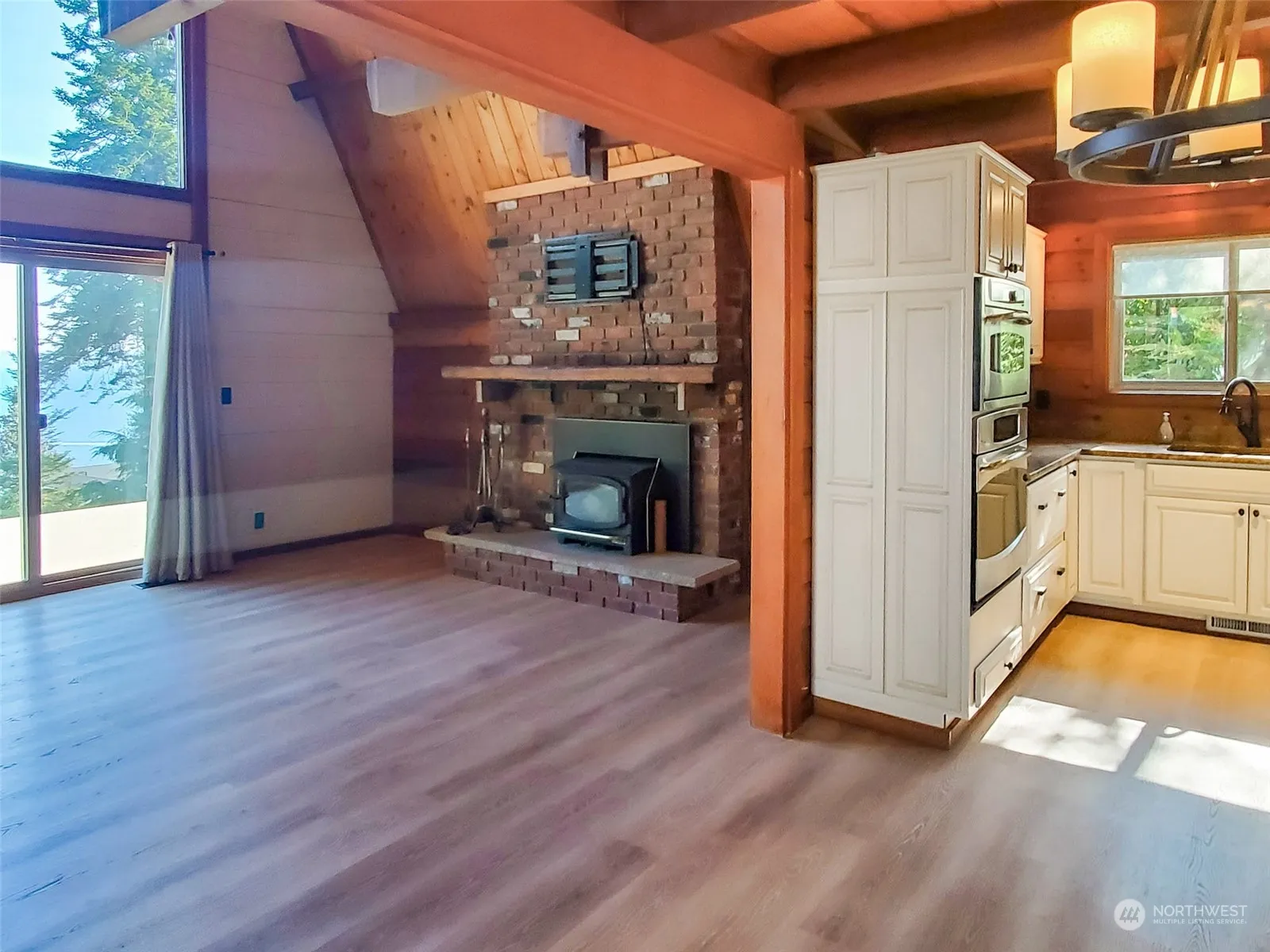 Dream waterview retreat in secluded Eglon. Fiber internet, loft office w VIEW perfect for remote workers. Massive house; main floor hub with vaulted living room, gourmet kitchen incl propane range, built-in oven & micro, fridge, dishwasher, right off wrap around deck, an ideal spot for entertaining and relaxing. 2 bd on main floor & full bath. Upstairs primary suite w double vanities, WIC, private balcony. Bthrms have heated flooring. Downstairs bonus living room (both LR feature woodstoves) w French doors to exterior, wetbar & minifridge, and a large bonus room with 3/4 bath. Laundry utility room downstairs. PNW classic fully-fenced yard, garden shed, covered wood storage, & garden beds. Min up from Eglon boat launch, 20min drive to ferry.