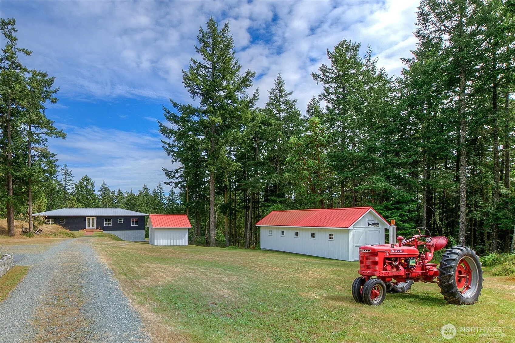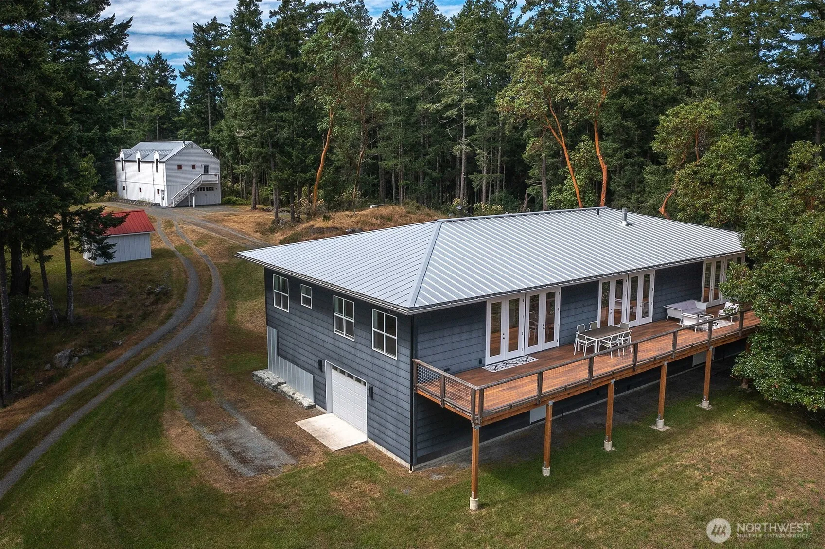 Incredible location near the Orcas ferry landing w/community dock & beach at Double Cove! This stunning turn-key home & property is situated on 6 private, sunny acres & features a gorgeous 3 bed/3.5 bath contemporary home, 1 bed/1bath guest house & delightful studio/barn for additional guest space. Enter on one of the loveliest roads on the Island, Old Farm Road. The artful combination of spaces is perfect for daily living & entertaining. Multiple work spaces include large well-designed shop w/bath, barn/shop & boat house. Finishes include: Radiant heat floor, quartz counters, gourmet kitchen with Sub-Zero & Wolf appliances, custom hardwood & tile floors, shared well. Some furnishings & vintage tractor included. Rock Island Fiber installed.