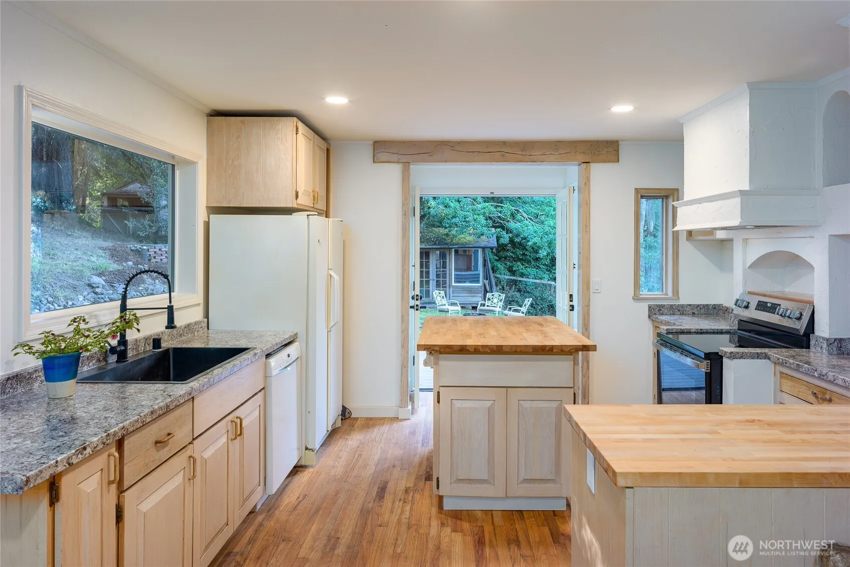 Charming English Tudor on Orcas Island! This handcrafted 2-bed/2-bath home blends old-world charm with modern updates. Upon entering you are met with original inlaid hardwood floors. The great room showcases soaring ceilings, a dramatic brick fireplace, and abundant light. A bright kitchen with butcher block island opens to the deck and garden for seamless indoor-outdoor living. Nestled on .89 acres with south facing peek-a-boo water views of Obstruction Pass, enjoy beach access, plus nearby public boat launch/dock, parks, Olga and Doe Bay amenities. Updates include metal roof, new flooring/floor refinishing, renovated baths, and fresh paint. Detached shop w/ water & power provides excellent space for hobbies.