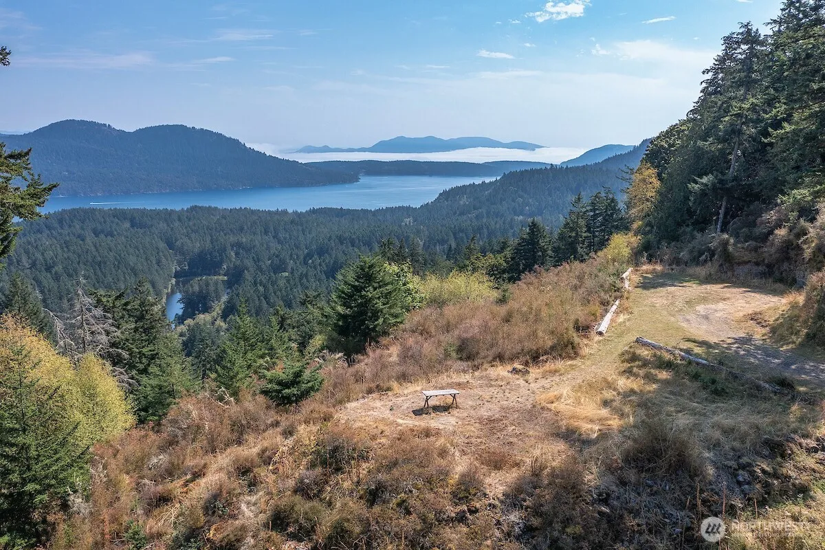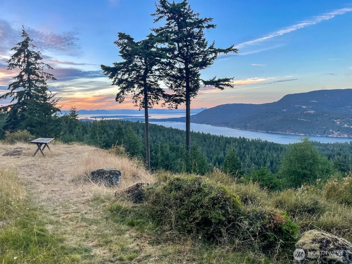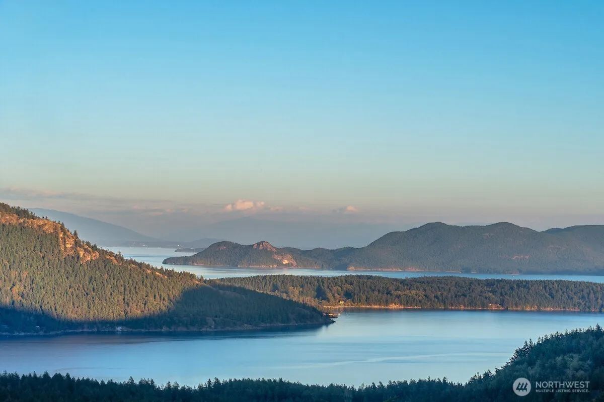 Panoramic 180 degree views from Cypress Island in the southeast, past snow-capped Mt. Baker above East Sound and Rosario, with Canadian Cascades, night-lit ski slopes and cities as a backdrop. One of 11 lots within the 232 acre Spring Hill Wildlife Sanctuary, this 25 acre site has plans ready for construction of a custom 3800 sf home w/ all rooms having views of Mt. Baker & Mt. Constitution. A full set of permitted plans by Vandervort Architects (use to be negotiated directly w/ the architect), an active building permit, approved Fire Marshall plan, septic design/permit, wetlands study, geological survey, private well, electricity & irrigation. End of the road location provides complete privacy. Spring Hill is a gated community.