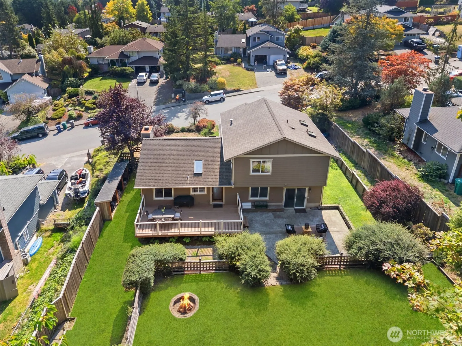 Beautifully updated home conveniently located near downtown Lake Stevens, curated blend of charm & craftsmanship on a lush quarter acre lot. 3 BEDS + OFFICE/flex space w/family room make this an ideal floor plan. Engineered hardwoods flow through the main living space, anchored by a fireplace, vaulted ceilings & built-in bookcase. Custom white millwork, oak doors, stained trim & wrapped windows add timeless warmth. Kitchen is full of natural light, KitchenAid app, Gas range, pantry & glass door leading out to expansive Trex decking that offers seamless indoor outdoor living. Primary suite w/tiled shower & private bath. Tiered level lawn, large patio, fire pit, detached shed, level drive, and 2-car garage. Lake Stevens School District.