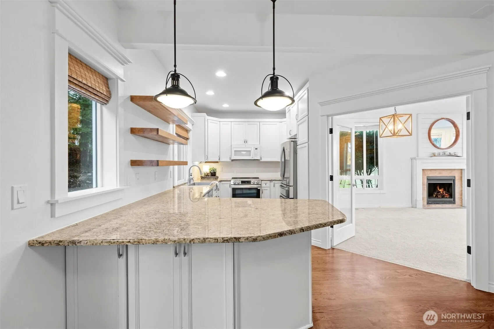 Amazing home near Lake Cassidy. Modern comfort meets everyday convenience! This 2,028 sq ft home has 3 bedrooms + office (or 4th bedroom), 2.5 baths, on .44-acre. The open-concept kitchen features floating shelves, stainless steel appliances, and a seamless flow to two dining and living areas. The primary suite includes a gas fireplace, walk-in closet, soaking tub, and updated vanity. Private view deck, perfect for morning coffee. Outdoors, relax on the patio, soak in the hot tub, and enjoy garden space. Updates include a new roof. House is wired for a generator, RV, sauna and hot tub. Private yet close to Lake Stevens shopping, and more, with a 2-car garage. Lake Stevens School District.