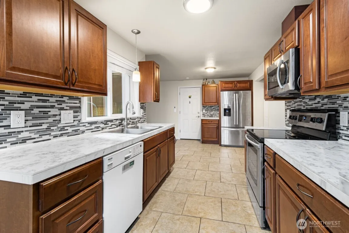 Charming 3 bedroom rambler available for lease. Functional floorplan includes living room, kitchen with dining area, and family room with cozy fireplace. Doors off living and family rooms lead to backyard. Primary bedroom has spacious closet and en-suite full bath. Two additional bedrooms and bath complete the home. Ample storage throughout. Two car attached garage with laundry. Fenced, low-maintenance back yard with shed, patio, and deck- perfect for sunny days. Minutes from shops, restaurants and Highway 18. Sorry, no pets. Available now!