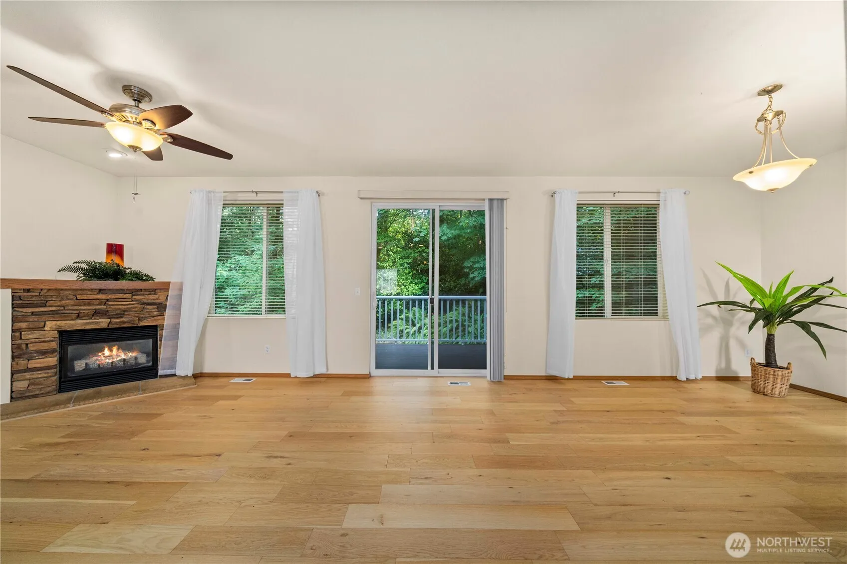 Pristine Gig Harbor two-story blends modern updates with Pacific Northwest charm. Major systems are brand new: heat-pump HVAC & water heater installed Aug’25 with long-term warranties, plus newer retaining wall and newer storage shed showing thoughtful care. Inside, newer LVP oak floors, fresh paint & stainless appliances (2022) make home move-in ready. Bathrooms feature river-rock floors & epoxy counters for a natural Northwest feel, while ceiling fans & gas fireplace add comfort. Kitchen has gas stove, ample counters, & built-in desk; laundry adds extra storage. Upstairs, primary boasts a double closets & ensuite bath. Relax & enjoy the view from covered front porch or back balcony surrounded by greenery. $5K LENDER CREDIT available!