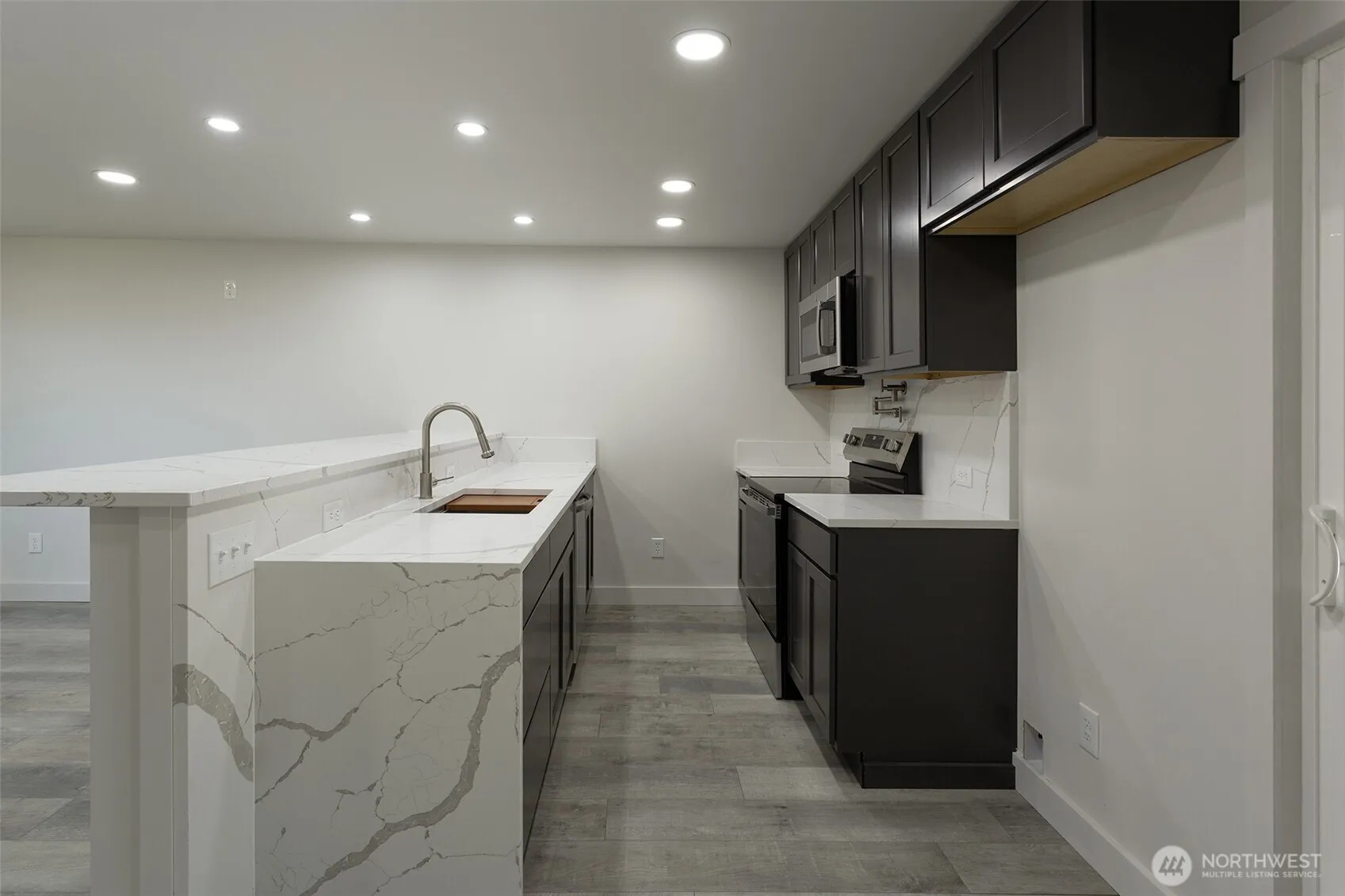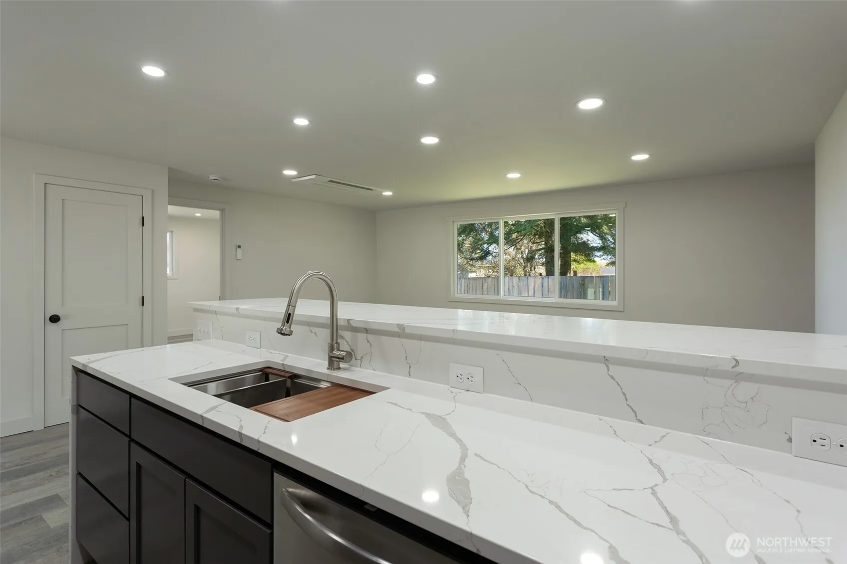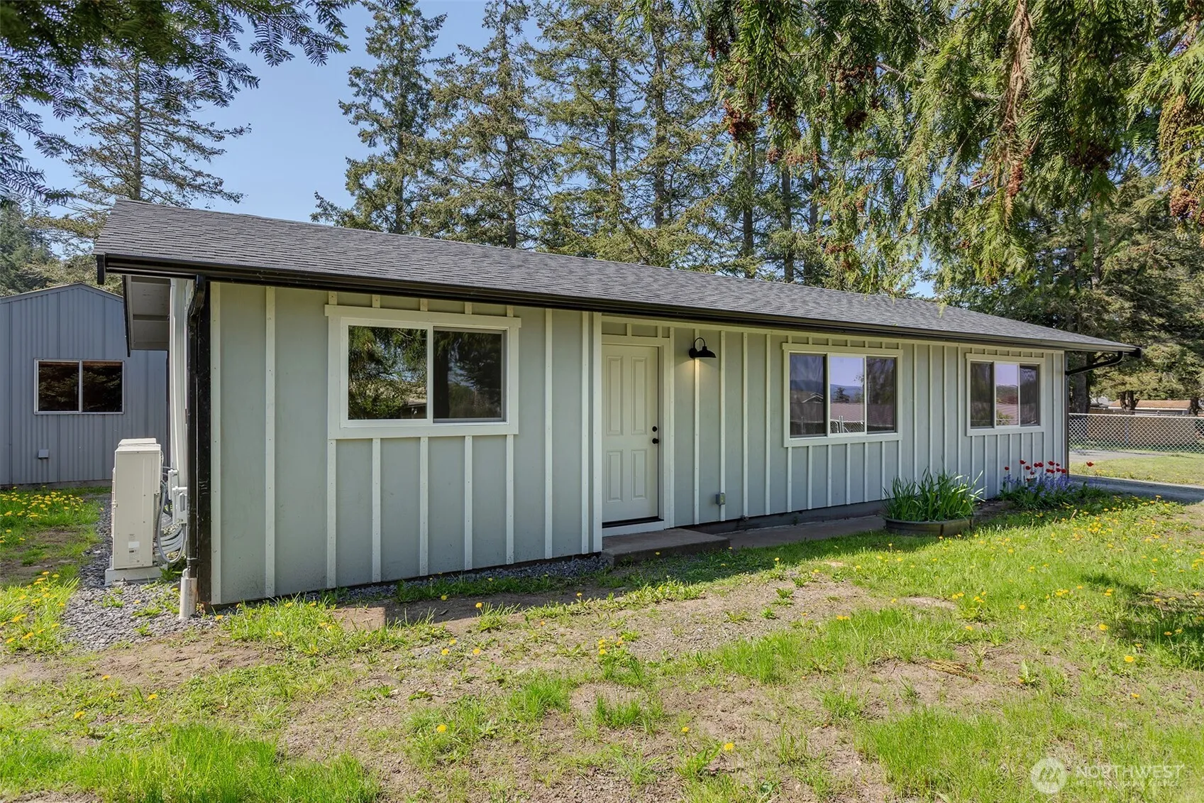 Property zoned for Multi-family. A single-family home built in 1971 was remodeled in 2024. There is room for two more homes or a duplex or two tiny homes. Double-listed as a single-family home. Newly remodeled, sweet, single-story home in the quaint town of Friday Harbor. This home was taken down to the studs and rebuilt; new board & batten exterior, newly installed insulation, drywall, plank vinyl flooring throughout, new efficient heating system, hot-water tank. The new kitchen boasts all-new soft-close cabinetry, quartz countertops with a waterfall side, an eating bar, a new dishwasher, stove, and microwave. The primary bedroom is on one side w/en-suite bath, while the two bedrooms, full bath, and laundry area are on the opposite side.