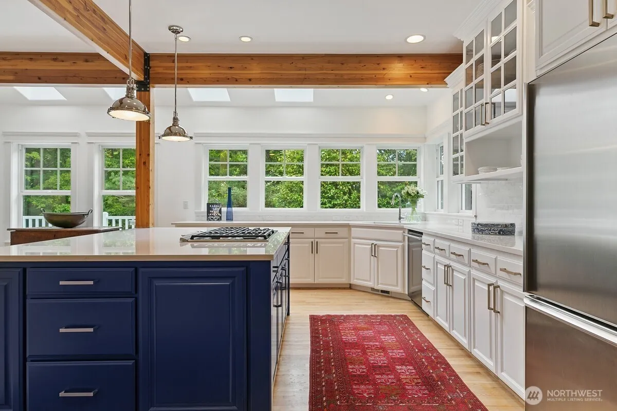 Gracious Colonial home in Midden Point community with private waterfront access and trails to town. Quiet cul de sac just a mile from the Seattle ferry and close to schools, parks & shops. Generous living spaces, formal and casual, plus home office and separate guest suite. Impeccably maintained, includes landscape service and professional management. Pets considered.