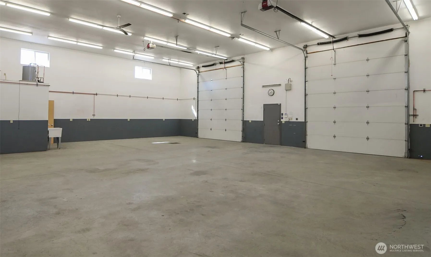 GREAT LEASE OPPORTUNITY FOR LARGE SHOP and/or STORAGE BUILDING! BRIGHT & CLEAN, 3200 sq. ft. with 2 spacious sections that can be separated. The front is 40′ X 30′ with 11′ doors and back is 40′ X 50′ with 14′ doors. The building has 2-man doors, central air & heat, small office, half bathroom, ceiling fan, floor drain, air lines for a compressor, 2 electrical panels and an alarm system. Use the west driveway.