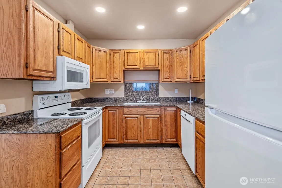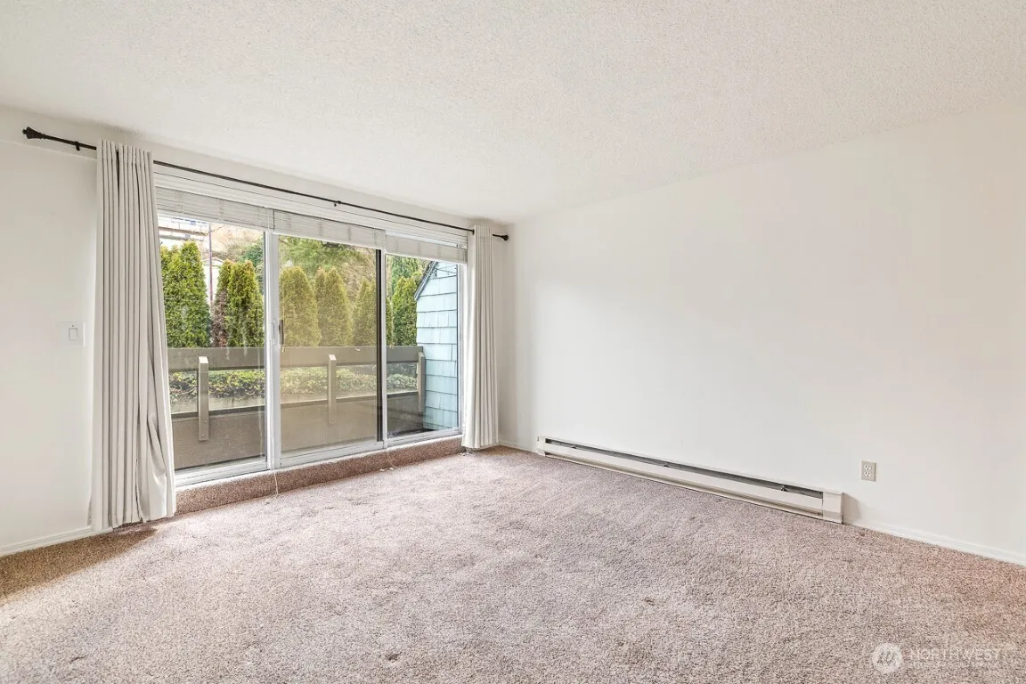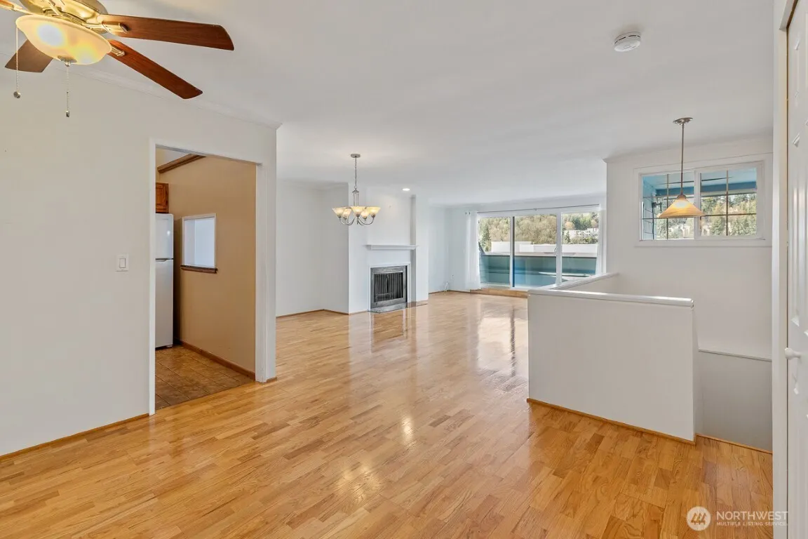 Top floor condo on Mercer Island — Landmark Villa Condo. Two reserved parking stalls. This condo has a two-floor layout with kitchen, formal dining room, and living room with wood fireplace on the upper floor. This level has a lovely wall of windows and glass slider that opens to a full balcony with view of the northern part of the island. Kitchen features granite countertops and natural light from upper windows. Lower level has two bedrooms, two full bathrooms, full-sized W/D, and extra large storage closet with bookshelves and cabinets provided. Controlled-access lobby. Includes: HOA dues, W/S/T/ Landscaping. Convenient to the local restaurants and shopping. Minutes away to Bellevue and Seattle. Sorry, NO PETS.