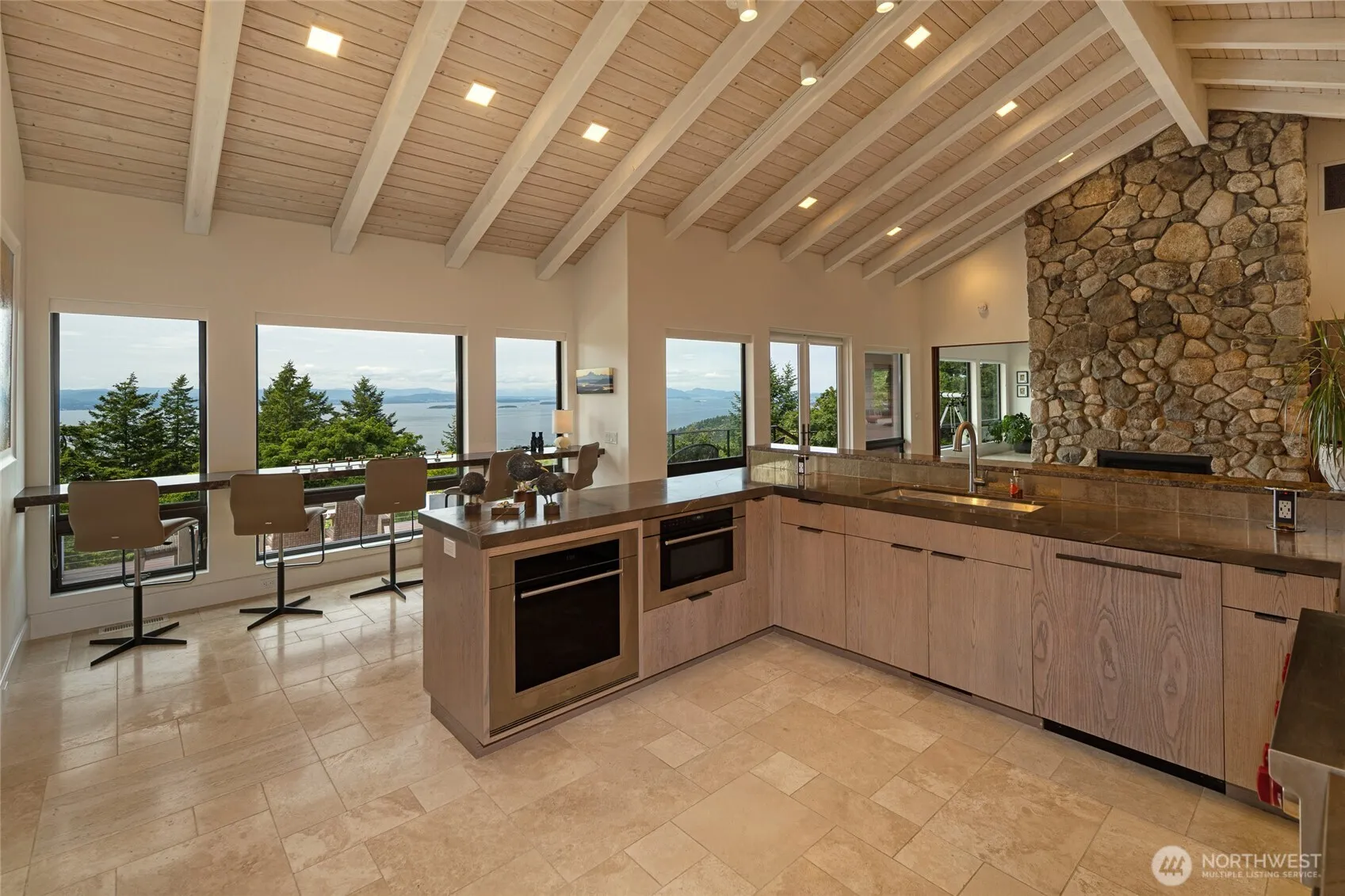Commanding 360° views from its 22-acre perch atop Mt. Dallas, this extraordinary property spans 2 parcels and captures sweeping vistas from Haro Strait to Mt. Baker. The luxurious, tigerwood-clad main home features a grand living room with stone fireplace, chef’s kitchen with artisan cabinetry and high-end appliances, and 2 elegant water-view suites with spa-like baths. A separate guest suite with kitchen, woodstove, and steam shower offers ideal flexibility. A charming off-grid cabin adds rustic appeal with solar power, wood cook stove, and multi-level decks for dining, stargazing, or tent camping. With water storage, heat pump with AC, high-speed internet, and 2-car garage, this private, versatile retreat is the pinnacle of island living.