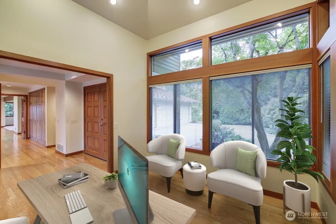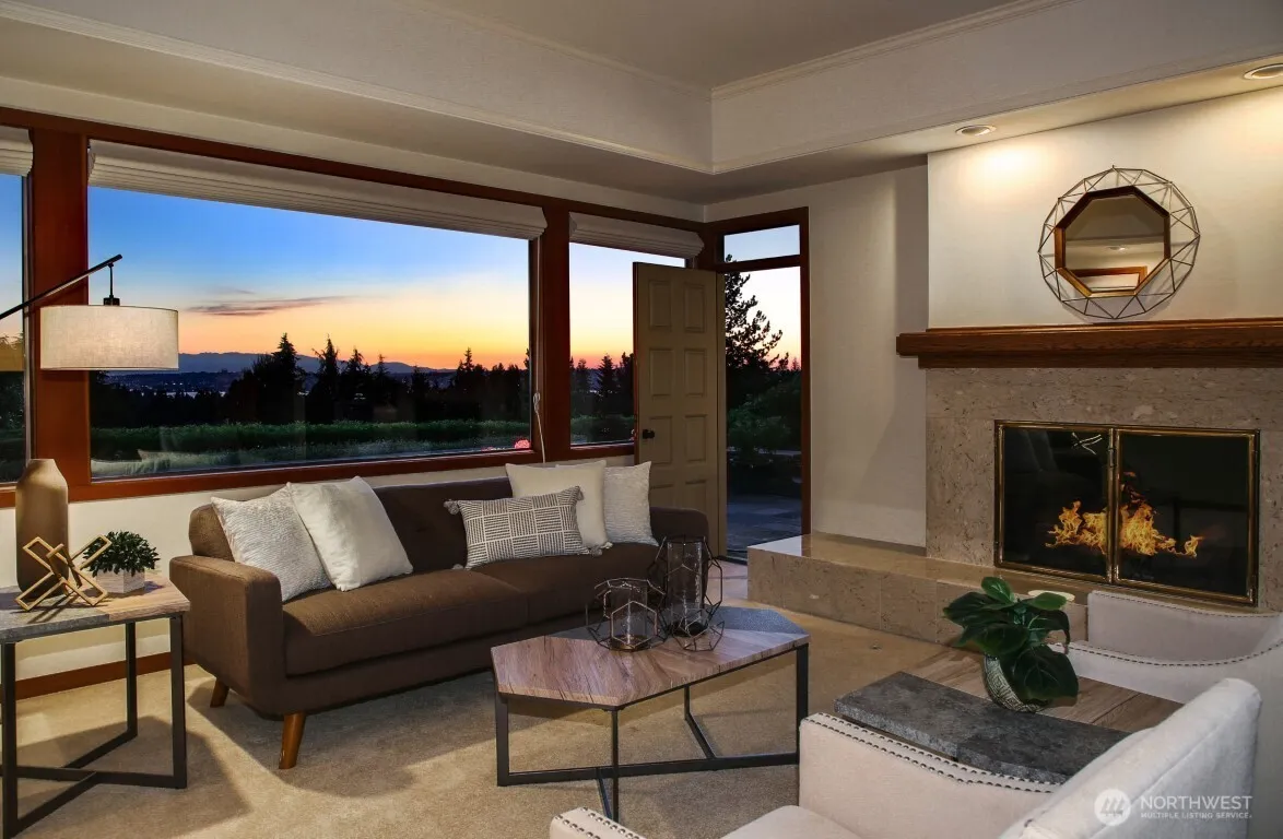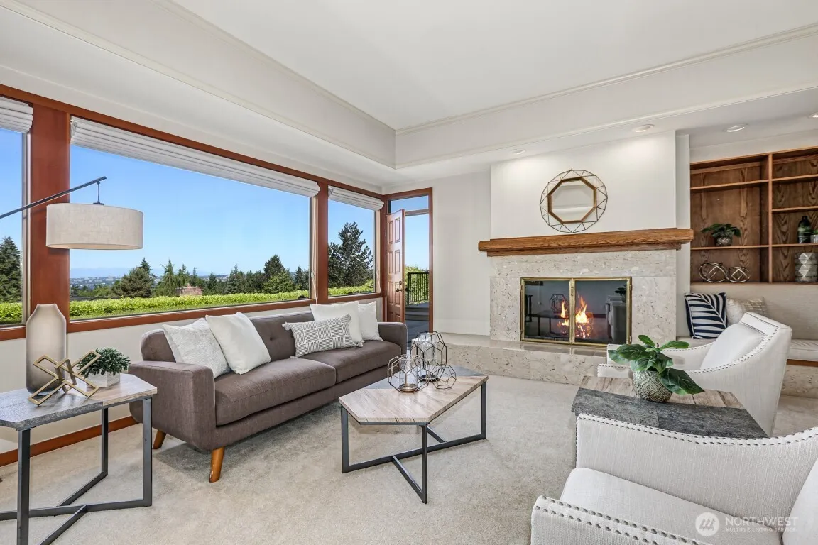 Avail 7/15. Classic Clyde Hill home situated on serene lot with stunning views of Olympic Mtns & Lake WA. Office & living right off entry. Kitchen opens to eating nook & family rm, great floor plan for entertaining. Main floor also includes formal dining, large laundry & guest bath. Upstairs boasts 3 secondary bedrooms, study, hall bath & primary bedroom. Primary bdrm has lovely views, cozy f/p, huge walk-in closet & 5-pc en-suite. Incredible outdoor spaces: expansive patio & deck, charming tree house & lots of grass space, all surrounded by gorgeous landscaping. Ample storage, and 3 car garage. Prime location, close to all the shops, restaurants & parks. Easy access to 520 makes for a quick commute. Yard service included, A/C, pets c/c.