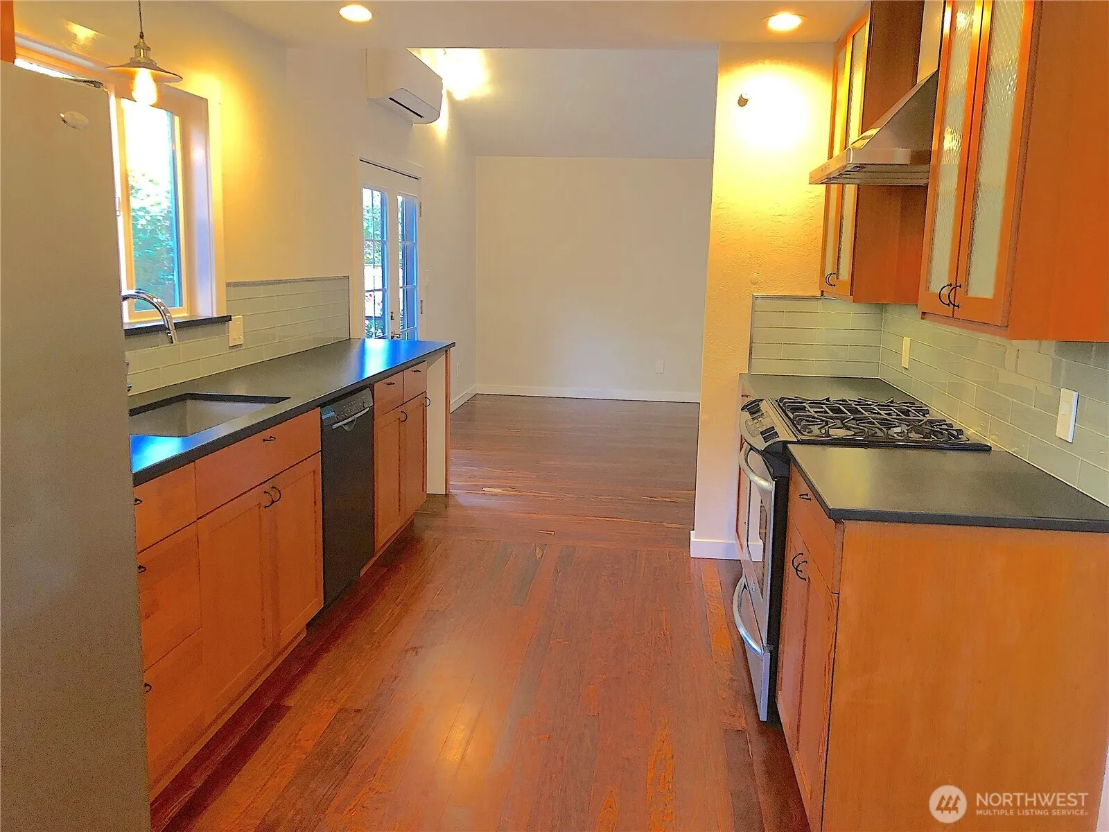 Beautifully detailed house with landscaped gardens, a peek of Puget Sound, a newer roof, siding, windows, refinished Chechen floors, paperstone counters and stainless appliances. Located on a cul-de-sac close to downtown Kingston and many services, plus walk on ferry to downtown Seattle and car or walk on ferry to Edmonds. Spacious primary bedroom with primary bathroom en-suite with heated floors, lovely shower, large vanity and custom walk in closet. Vaulted ceilings and many windows bring in natural light and provide views of the professionally landscaped yard and surrounding gardens. French doors off the dining area great room lead to a nice deck. Second bedroom and full bathroom. Taree private community beach access is nearby.