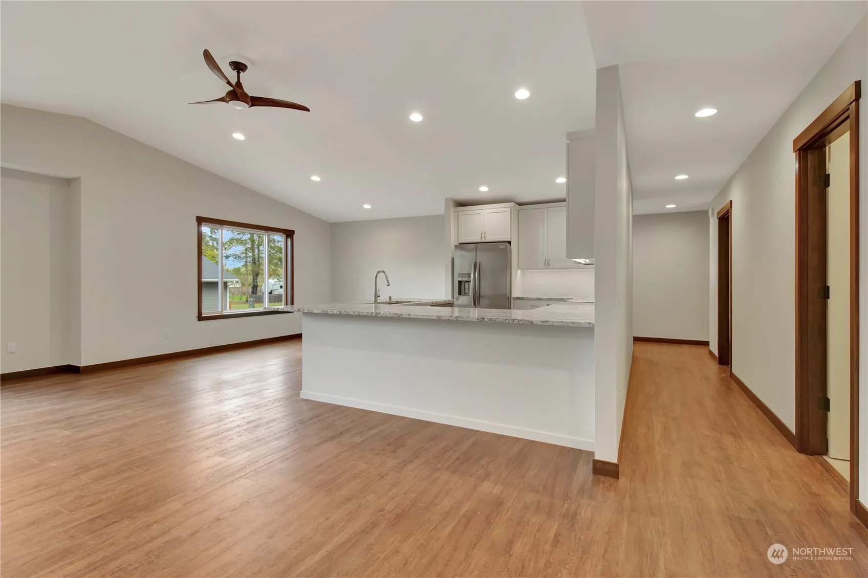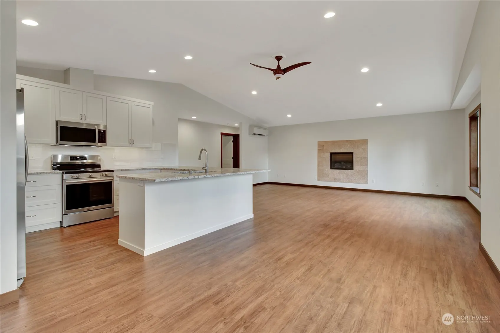 NEW CONSTRUCTION move-in-ready 3-bedroom, 2-bathroom 1,711 SF home features modern features: LVP flooring, granite countertops throughout, large kitchen/great room with high quality appliances, gas fireplace and vaulted ceilings, custom cabinets, heat pump w/AC in every room, hot water outside. The spacious primary bedroom with modeled carpet, luxurious bathroom featuring heated tile floors, walk-in custom tile shower and large walk-in closet, deep 2-car garage and RV parking. Situated at the edge of town, this home is perfect for outdoor enthusiasts w/ access to trails, a downhill mountain bike park, river rafting, snowmobile trails, and a world-class archery range. The nearby airport also caters to those with a passion for flying.