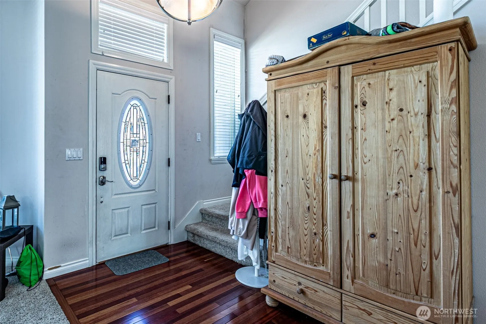New Price on this Great home in Eatonville! This well maintained 4 bedroom 2.5 Bath with formal living room and coved ceiling in the dining room is a must see. This home is equipped with a heat pump for comfort in all seasons and also has a gas fireplace. Kitchen with island and pantry has ample granite countertop space. You will love the Brazilian Cherry Harwood flooring. Primary Bedroom with coved ceiling has a large bathroom with heated tile floors, a walk in closet, jetted tub, and Toilet has its own door. Hang out in the gazebo in the back yard and catch that peek-a-boo mountain view or test your green thumb in the greenhouse. Outside furniture does not stay. Propane tank is owned and stays along w/shed NO HOA!
