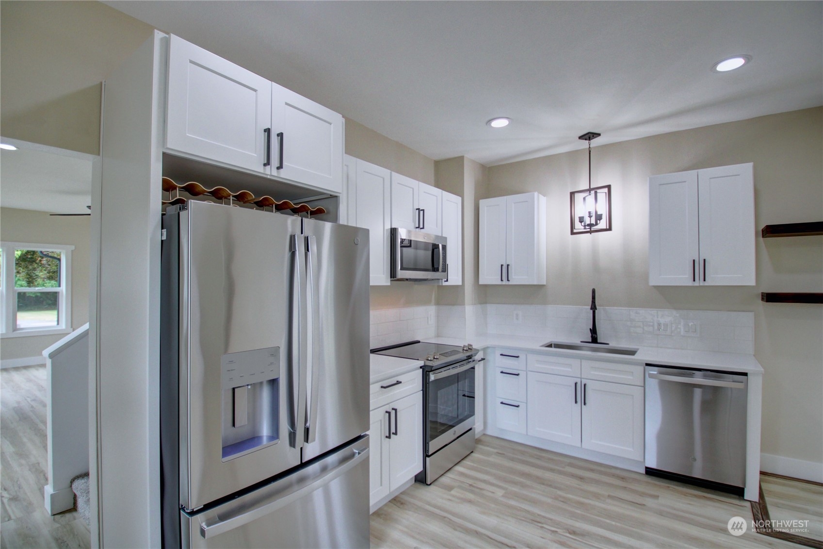 Two homes on one lot!! Beautifully remodeled home, with an ADU, on a spacious third of an acre fully fenced lot in town!! The main house boasts vaulted ceilings, new windows, new floors, new interior and exterior paint, bright open kitchen with stainless steel appliances, and so much more. Two bedrooms downstairs with a custom tiled 3/4 bath along with the laundry room and extra office/den space. Head upstairs to two more bedrooms with original built ins and full bathroom with a loft. French doors from the kitchen open up to the large private backyard with a fire pit and walkway to the also fully remodeled, one bed & one bath ADU. Located in the heart of Burlington next to parks, schools, library and shopping.