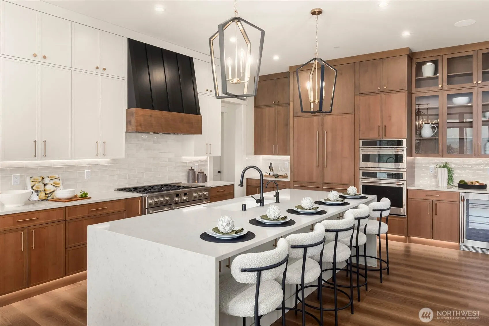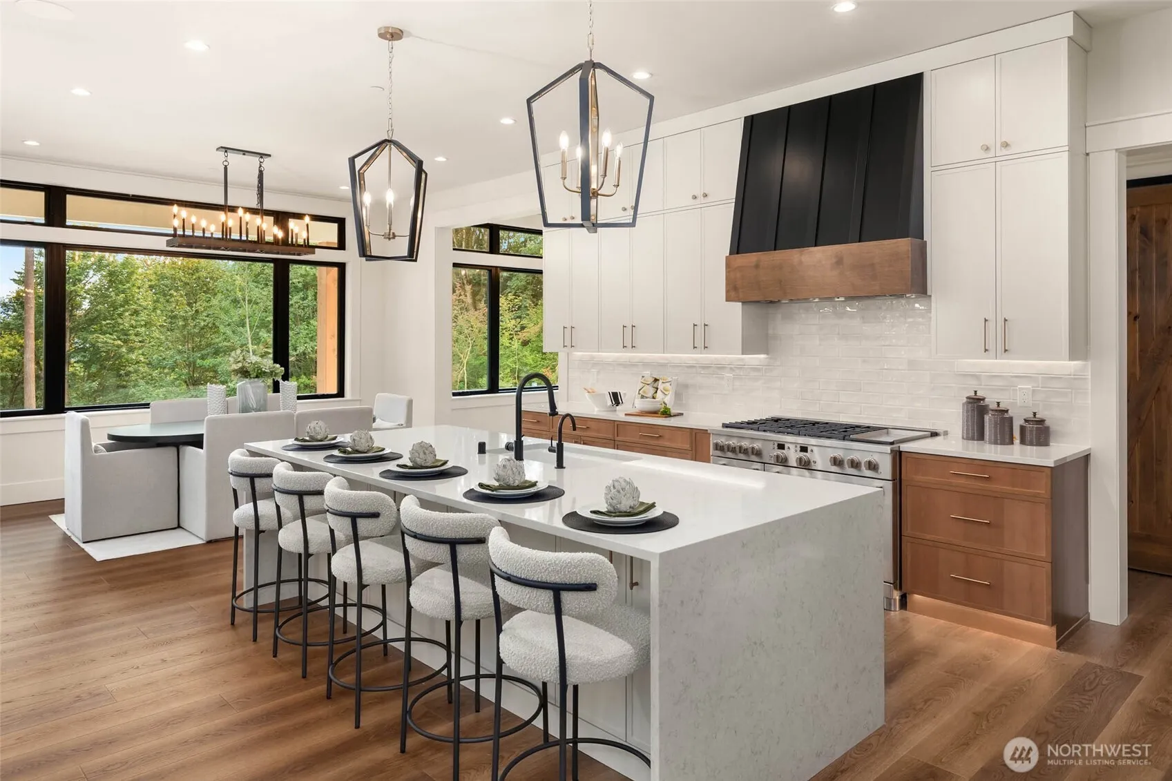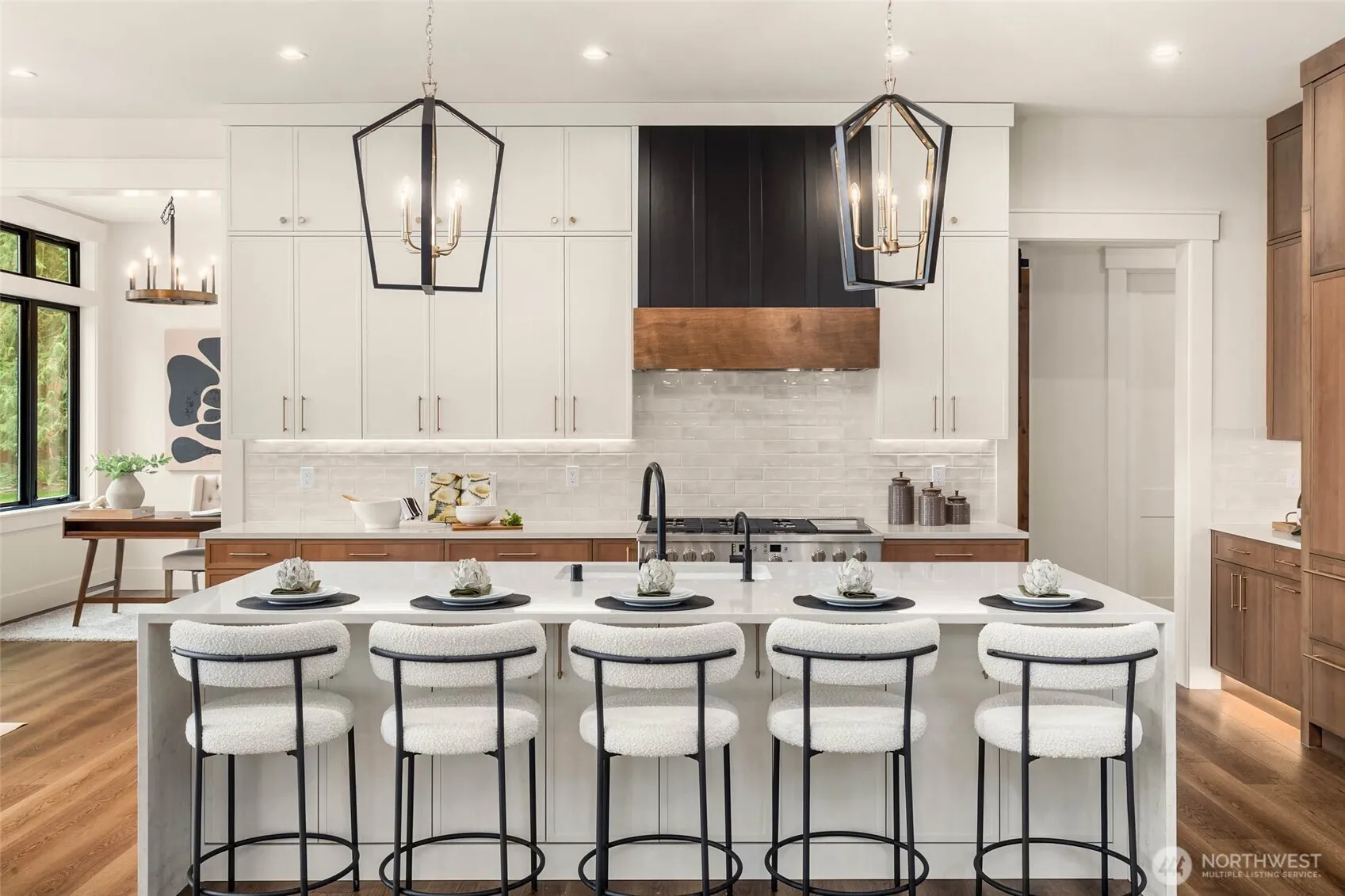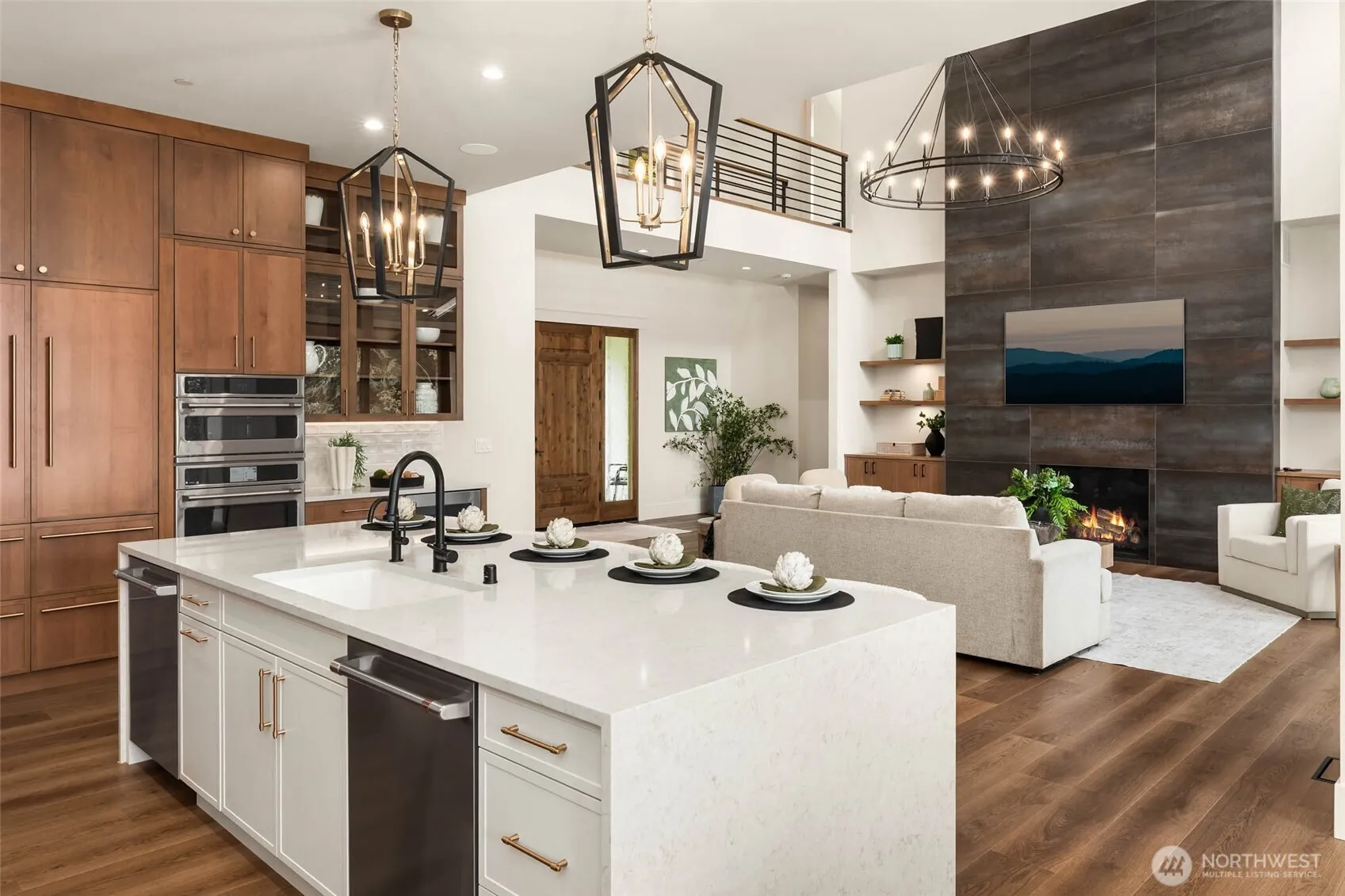 Stunning new modern farmhouse on 8.8 acres with panoramic views of the Valley and Cascade Mountains. The Great Room welcomes you with 20’ ceilings, custom built-ins, and a tiled gas fireplace. Gourmet kitchen features a 6-burner range, double ovens, paneled refrigerator, and two dishwashers. Main-level primary suite offers a fireplace, heated bathroom floors, and a massive walk-in closet. Upstairs includes 3 bedrooms and additional flex room. 2 of the 3 bedrooms have ensuite baths—and a large bonus room with built-in storage. Designer finishes throughout and expansive windows bring in natural light and showcase the incredible scenery. Fully permitted plans approved for 3,600 sq ft shop/gym/office.