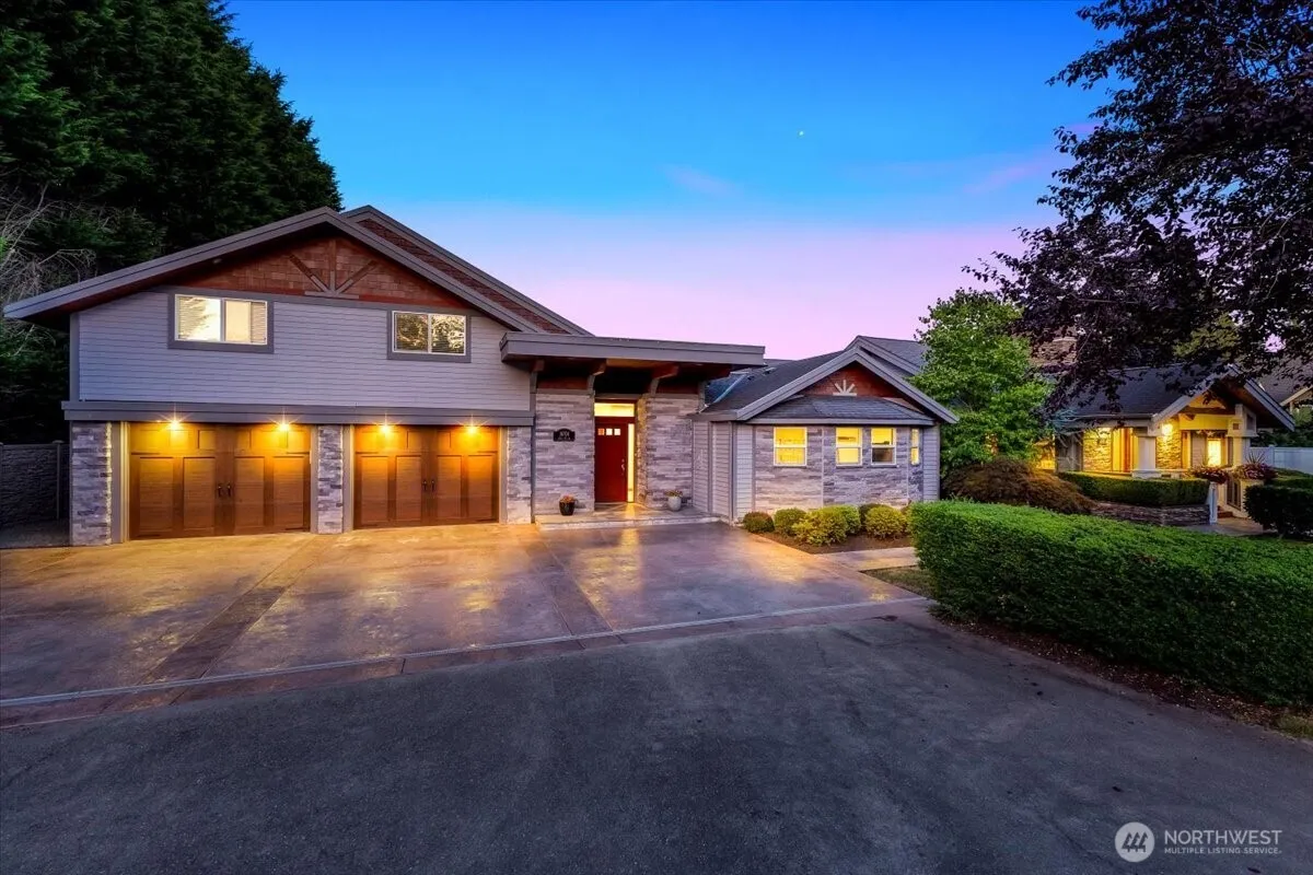 Price just lowered! Hollywood Hill Northwest Contemporary estate on a shy acre with no HOA. Over 5,250 sq ft of light-filled living, expanded & remodeled in 2018. Vaulted wood-beamed ceilings, polished concrete floors, and a dual-sided fireplace anchoring the open-concept layout. Includes 5 bedrooms, 3.5 baths, two main-level primary suites, & laundry for convenient living. Smart systems: 3-zone HVAC, RF lighting, built-in speaker system, & generator. Resort-style outdoor living features lap pool, sport court, gas firepit, built-in BBQ, dual patios, and 4,500+ sq ft of stamped concrete. Detached insulated shed with power. Minutes to wineries, trails, and Eastside tech hubs. Northshore schools. A rare blend of space, systems, and setting.