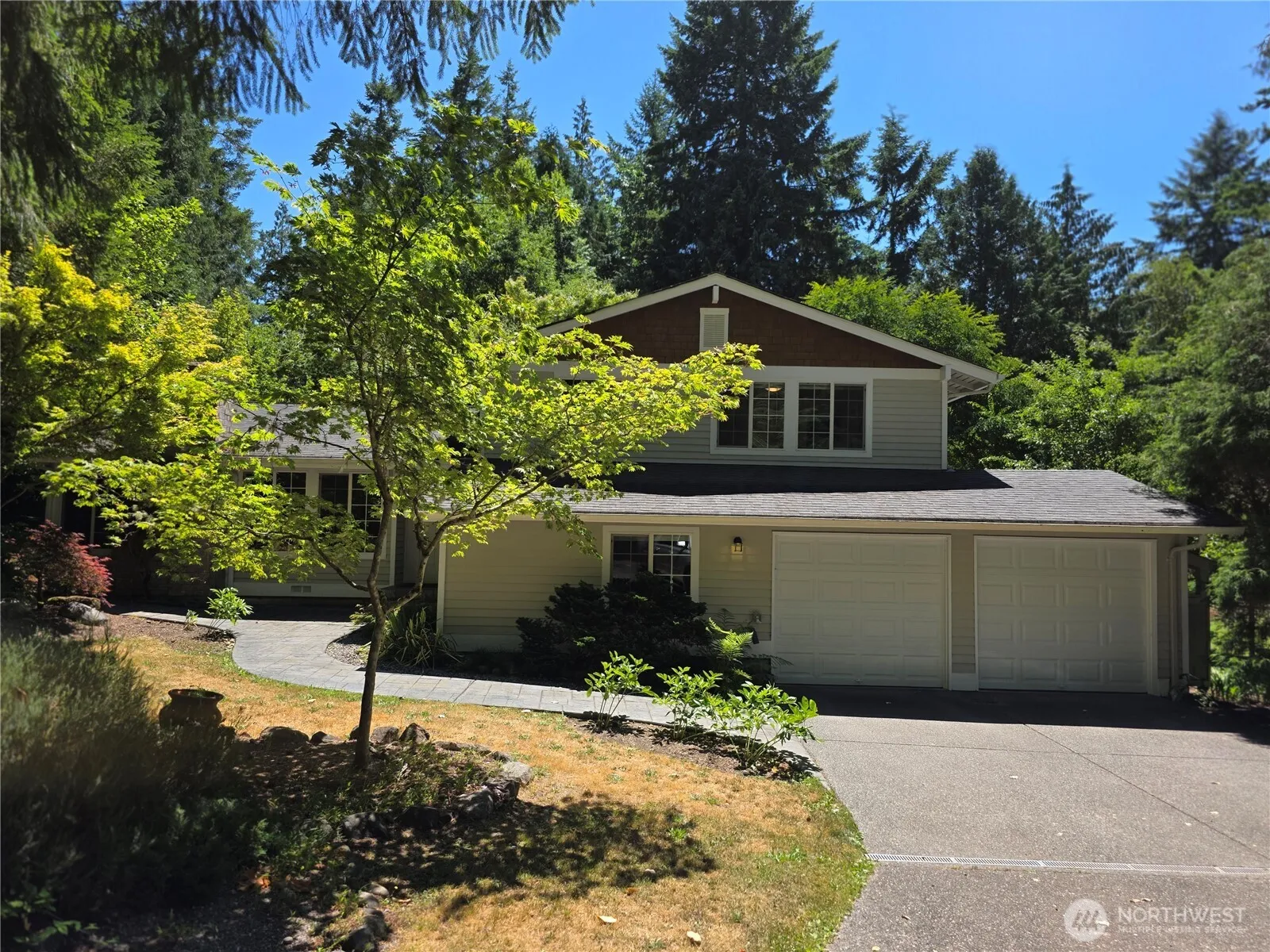 Beautifully maintained 2281 sq ft tri-level home, on the south side of Baker Hill. 3 bedroom + bonus room, 2.75 baths, primary bedroom features a recently updated primary bath & a cedar lined walk in closet, family room with a wood burning fireplace, formal dining room, a large kitchen with eating space, a formal living room with wood burning fireplace and vaulted ceilings. All of this nestled on just over an acre of private garden space. Minutes to shopping, restaurants, the ferry, water access and trails.