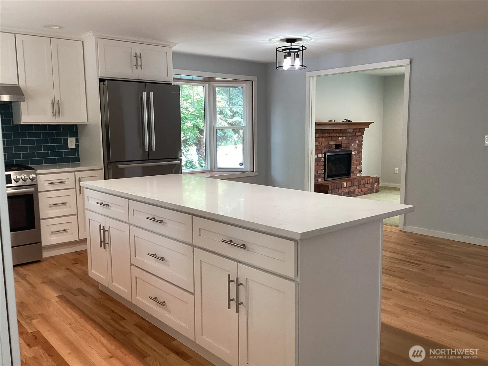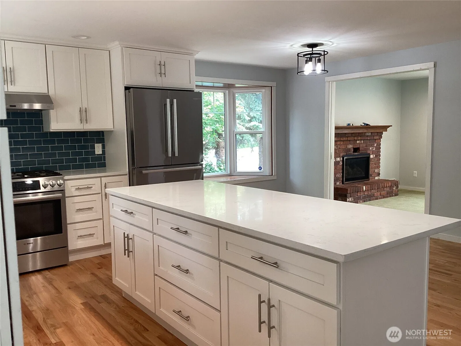 Welcome to this sought after Mukilteo area rambler. This home boasts a modern, open concept kitchen and living room, perfect for entertaining or simply enjoying a relaxing evening by the gas fireplace. The kitchen is a chef’s dream with a gas cooktop, stainless steel appliances, and an oversized island with bar seating. The home features three bedrooms and two bathrooms, including a primary suite with an attached bathroom. The hardwood floors throughout add a touch of elegance and warmth. The fenced-in backyard and trek deck provide a private outdoor oasis, ideal for enjoying the Pacific Northwest’s beautiful seasons. A convenient washer and dryer, a two-car garage, and proximity to Mukilteo schools add to the homes appeal.
