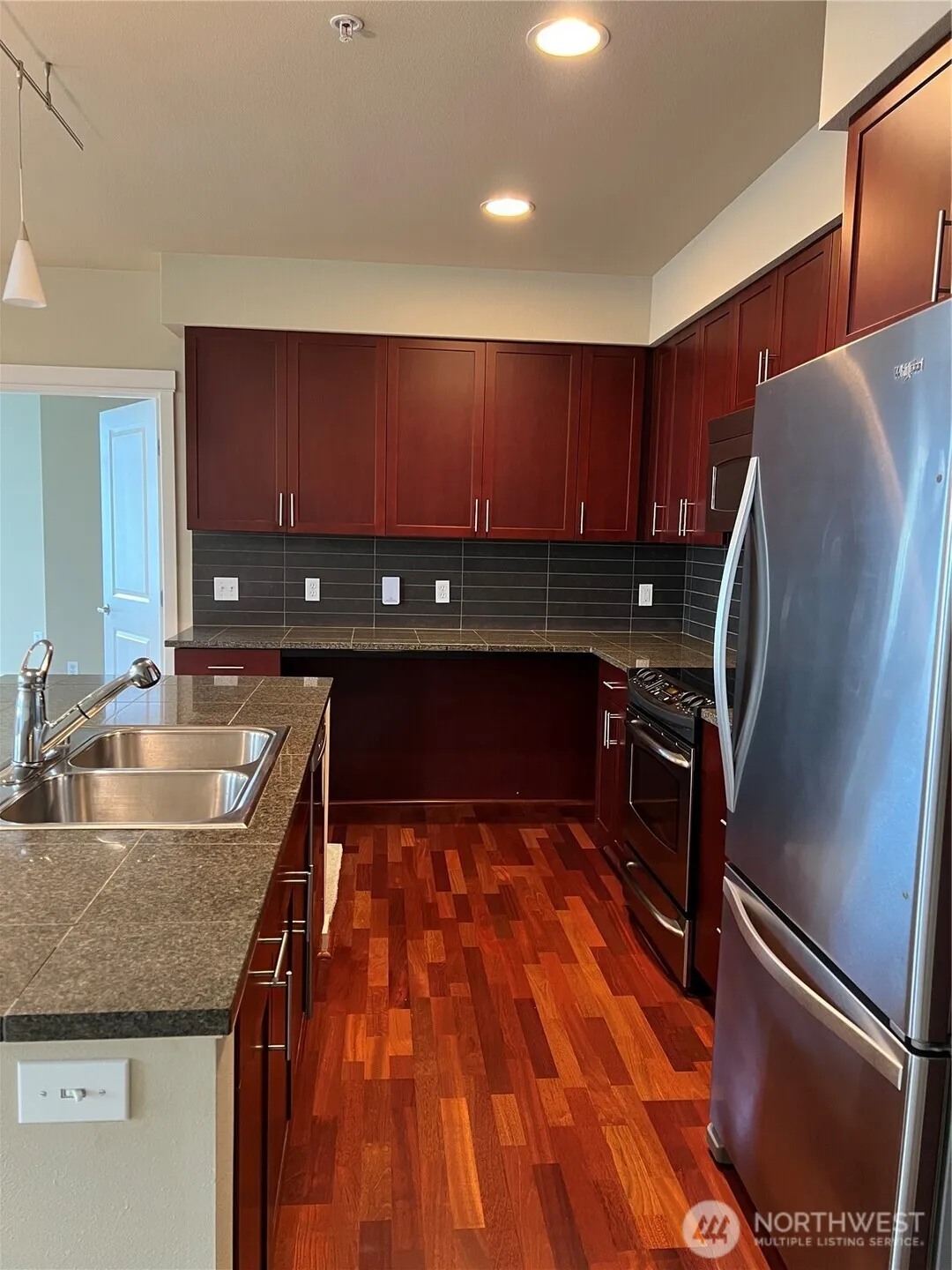 Beautiful, spacious west facing corner condominium located in desirable and award winning Harbor Square! Just steps from the ferry in the heart of Winslow, everything is at your fingertips! Huge walls of windows on two sides encase this flowing floorplan. Gourmet kitchen w/large center island, separate dining area comfortably seats 6, spacious master w/spa like en-suite master bath, huge 2nd bedroom & second full bath, it’s like having 2 master suites! Parking & additional storage too!