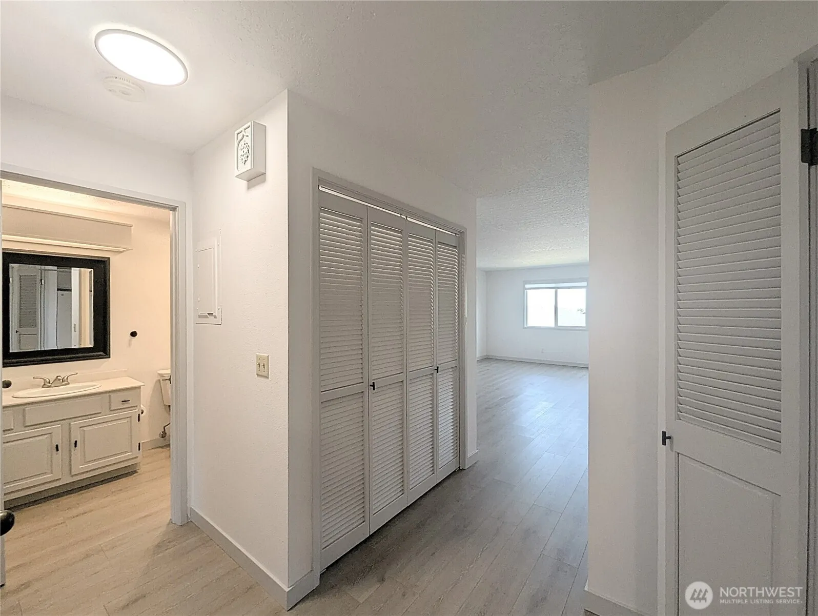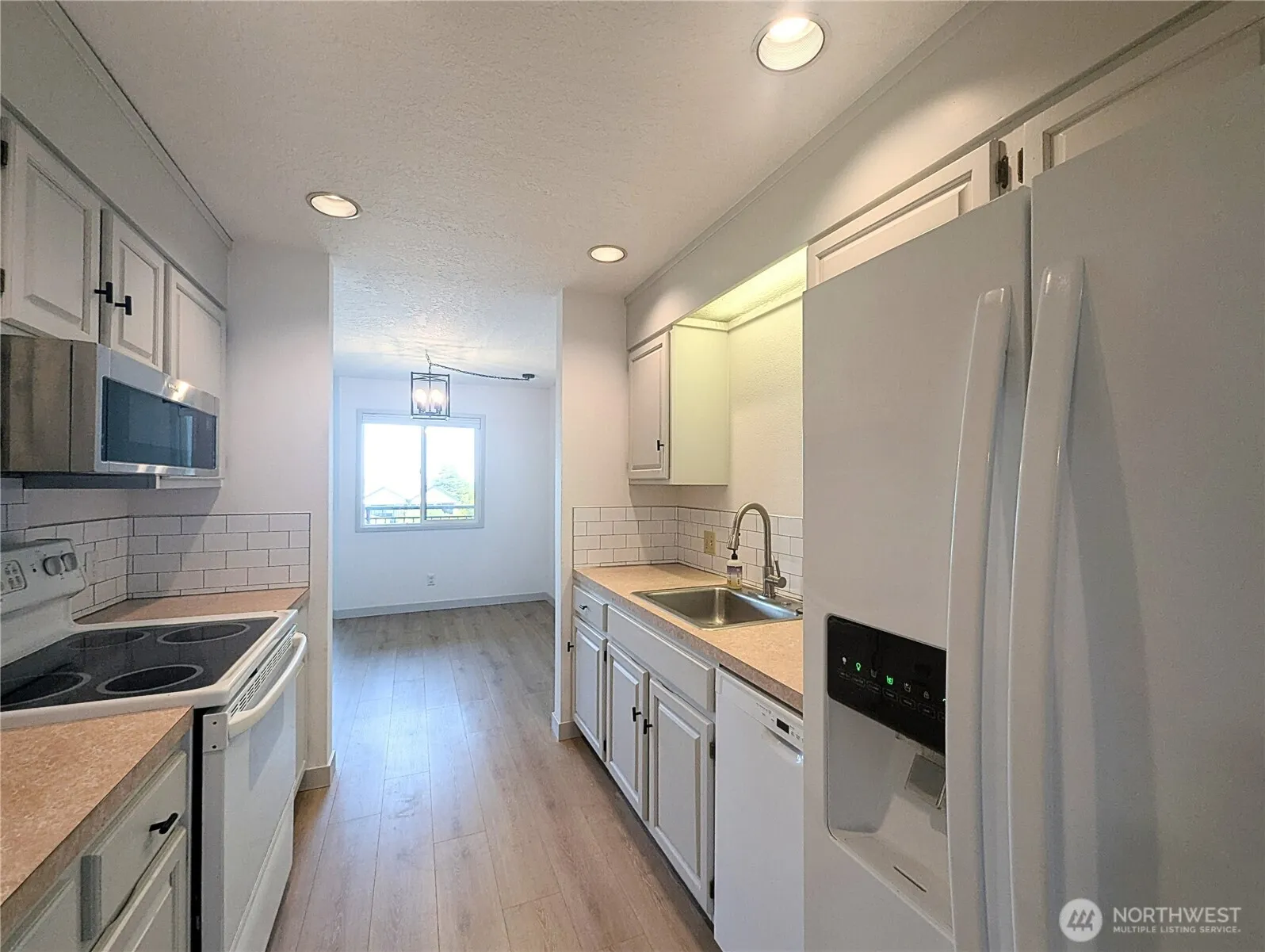 Available Now! Newly renovated 1 bed 1 bath condo in the heart of the Edmonds Bowl. Nearby everything that Edmonds has to offer! Enjoy new luxury vinyl plank throughout, large walk-in closet, open & bright layout and a peak a-boo view of the sound off of your very own patio. Complex offers designated parking for residents with ample guest parking, fitness center, large storage unit on separate floor, spacious lobby entrance with indoor mailboxes and convenient elevator to take you to and from every floor. Pet friendly! 2 pets max, must be under 301bs each per HOA with addit’I $500 pet deposit per pet. Water, Sewer, Garbage included in rental rate. Tenant responsible for electric. $350 move-in and move-out fee payable to HOA