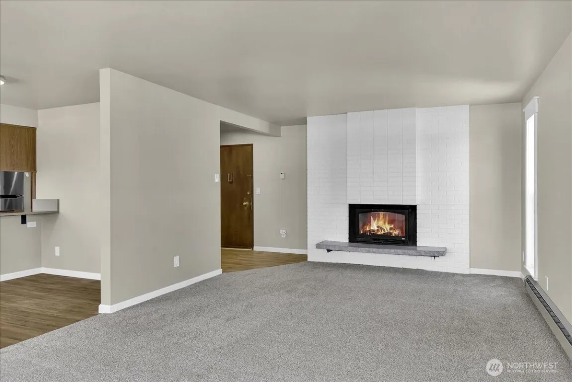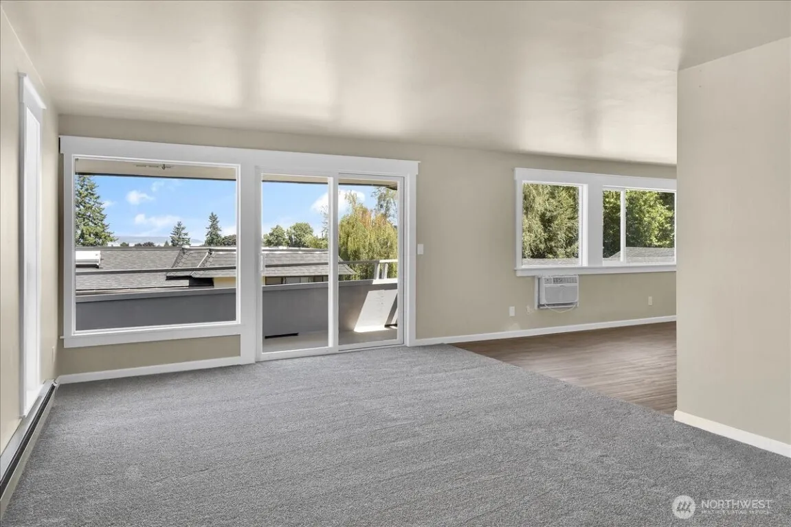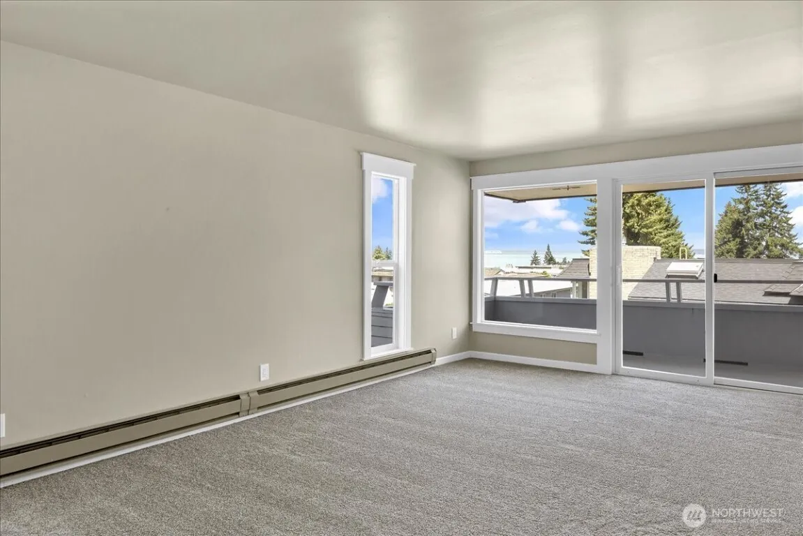Available August 18th. Remodeled Top Floor condo with sweeping views of the Puget Sound in the Edmonds Bowl. This gorgeous 2 bed 1.75 bath unit features a bright spacious floor plan featuring a gas fireplace, dining room, eat-in kitchen with pull up bar and spacious deck off the living room. ALL NEW paint, countertops, LVP floors, carpets, windows, blinds, washer & dryer, stainless steel appliances and fixtures throughout! 1 covered parking space + storage shed & ample street parking available. Water, sewer, garbage & landscaping included in rental rate. A/C in living room/dining room! Close to the Heart of the Bowl! No pets.