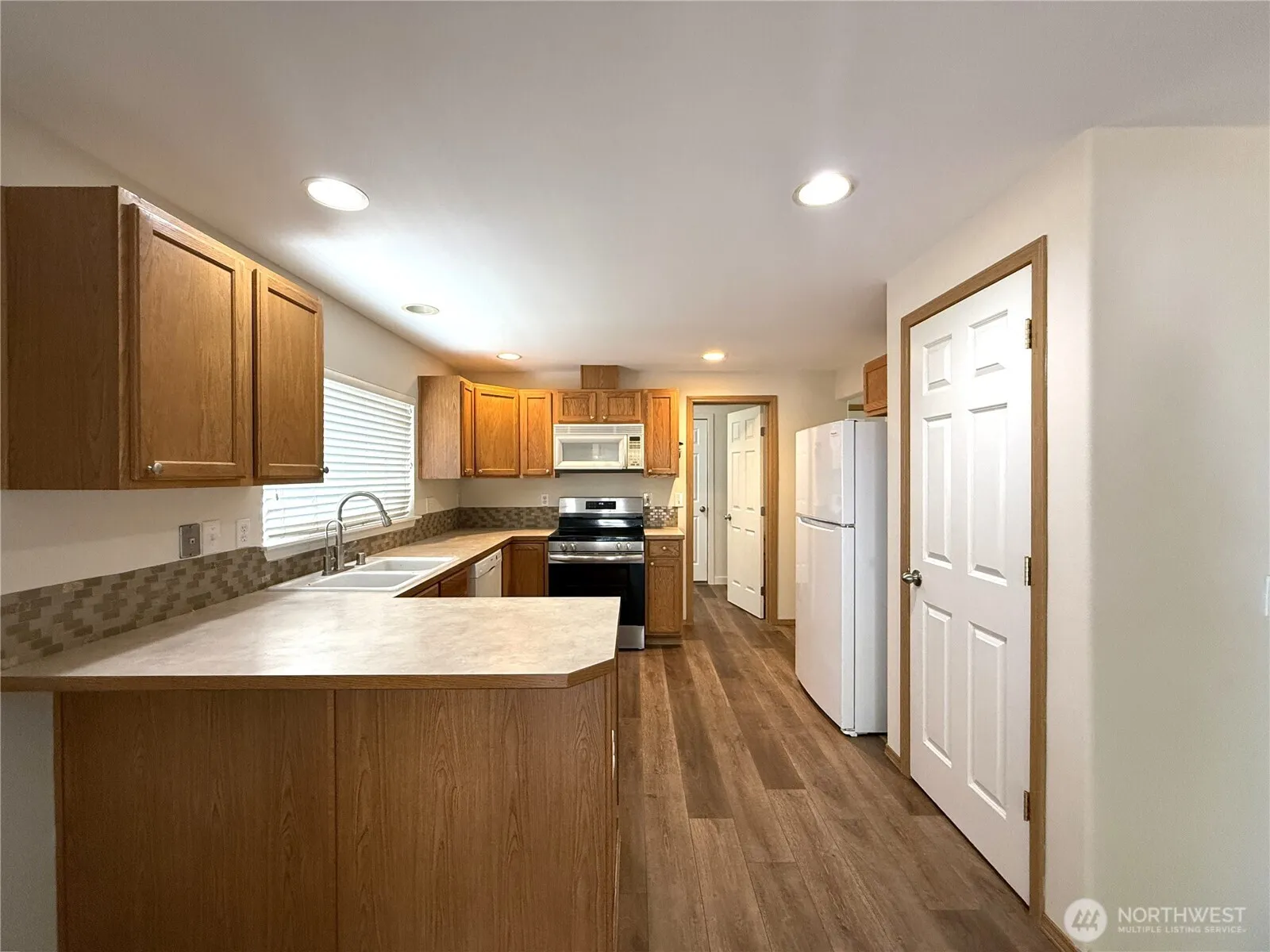 Move-in Ready! Welcome home to this lovely 3-Bdrm home with updates throughout! Natural light floods through main living area in this well appointed home, with roomy kitchen that includes all appliances and ample storage. Separate dining area opens to private deck. Beautiful new woodgrain LVP floors in kitch/dining + new carpet & paint thru out home. Upper level has large bonus room that easily doubles as 2nd living space or home office. Spacious primary bdrm with attached bath & walk-in closet, plus two add’l bdrms, hall bath round out top floor. Separate laundry Rm with W/D hookups and half bath. 2-car attached garage. Excellent location in great neighborhood. Close to schools, shopping and EZ commute. Pets considered CBC w/added deposit.