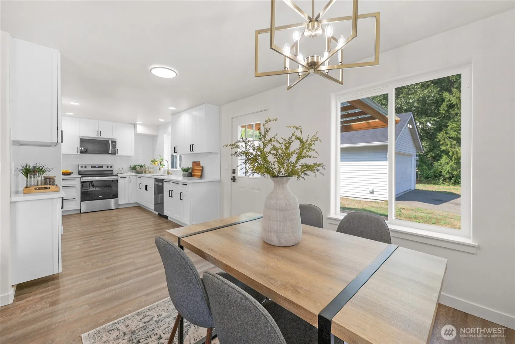 Beautifully updated Arlington 2-story – Step inside to bright and open floor plan featuring cozy living room, new vinyl plank flooring, recessed lighting, and fresh interior paint throughout. Gourmet kitchen is a true showstopper, boasting new quartz countertops, new soft close cabinets, new stainless steel appliances. Upstairs hosts the expansive primary suite w en-suite bathroom, walk-in closet, + two additional bedrooms and upstairs laundry. Front and back decks – perfect for weekend barbecues or morning coffee. The detached 2-car garage offers extra storage + room for RV parking. NEW ROOF ON HOUSE & GARAGE. FRESH EXTERIOR PAINT. Ideal location minutes to I5, shopping, Costco & local restaurants. Lakewood School District. Preinspected.