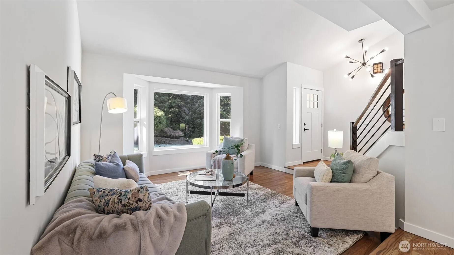 Tranquil home nestled on 1/2 acre and has a meandering creek with salmon, and lush foliage. Vaulted entry w/refinished hardwood floors throughout main level. Formal living & dining rooms lead to updated kitchen w/quartz counters, new appliances, white cabinets & island w/eating nook. Overlooking the wooded backyard relax & converse in the family room w/wood fireplace. Primary suite with seating area, walk-in closet, territorial views, and bath w/deep soaking tub and separate tiled shower. Custom closets and New roof, siding, windows, HE Furnace, and hot water tank. Large patio overlooks sprawling lawn, firepit, and creek. Oversized 3car garage. Quiet, dead-end street, peaceful living yet 3 minutes to I-90! Highly rated Issaquah schools.