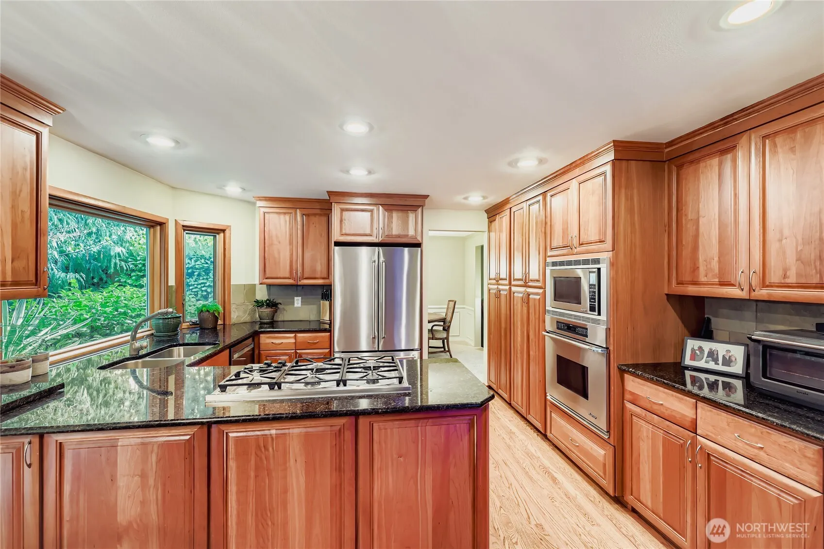 This beautiful Bellevue home in a highly sought after neighborhood radiates pride of ownership! Located on a quiet dead end street backing up to a beautiful green belt surrounding your terraced patio in a quiet oasis awaiting you each afternoon as you unwind. Complete with a high bank this property backs up to a private creek on city owned property offering you further buffer from the rest of the world as you seek to relax on your back patio in your own secret garden. Enjoy amazing views from your kitchen, dining & living room looking out onto your back patio and the tranquility it provides. Upstairs your primary bdrm w/ space for office or seating area, walk in closet & 5 piece bath complete w/ heated floors, a soaking tub & tiled shower.