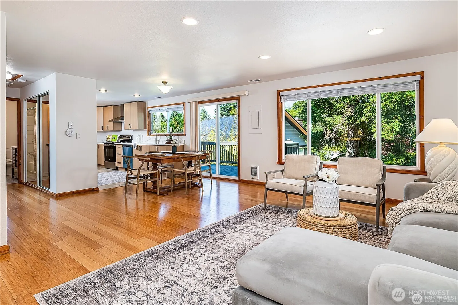 Located at the end of a quiet street this remodeled Shoreline duplex blends thoughtful design with unmatched flexibility. Each unit enjoys its own private yard and garage. Inside, this unit been completely refreshed with a new kitchen, updated finishes, and modern, light-filled spaces. This unit includes generous living and dining areas that open to a sunny back balcony, perfect for entertaining. A clean, efficient layout ideal for guests or extended household needs. Just minutes from the new light rail, parks, groceries and schools. This is a rare opportunity to live in a turn-key property in a growing and well-connected neighborhood.