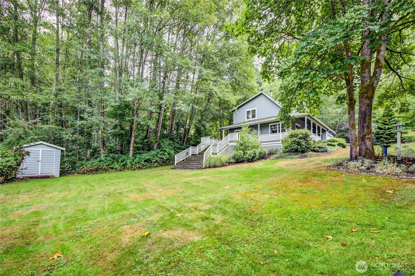 Charming cottage home on sunny 1.16 acres! This property features a large deck off the main living space, hardwood floors, efficient heating & A/C (heat pump w/mini splits), cozy wood burning stove, open floor plan, main floor bonus space with ensuite bathroom, upper bedrooms with ensuite bathrooms, and tasteful upgrades. All appliances included and has full-size W&D. Convenient mid-island location close to town, schools, golf course, and ferry.