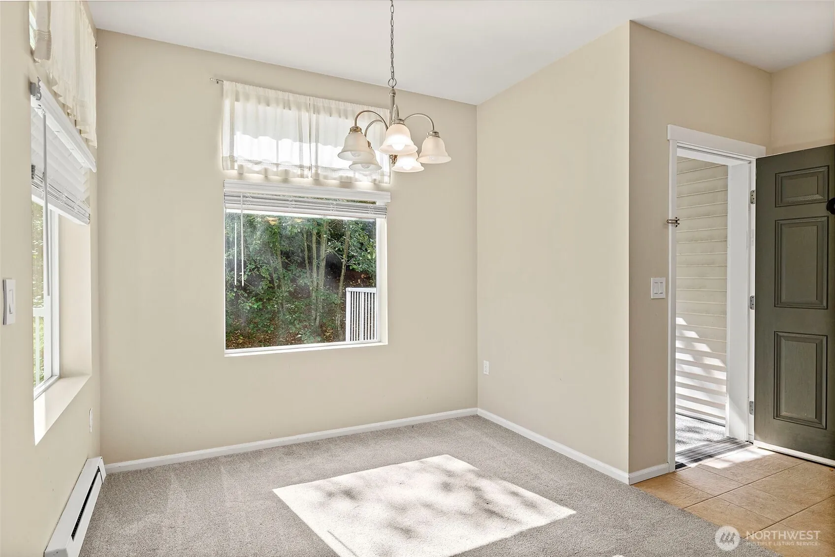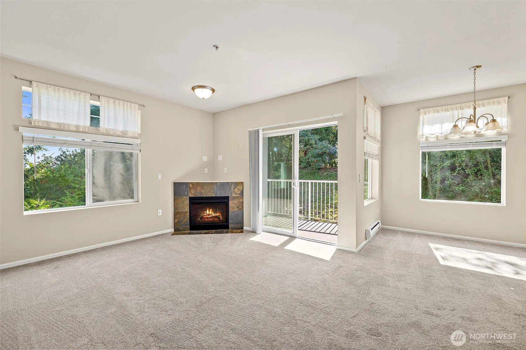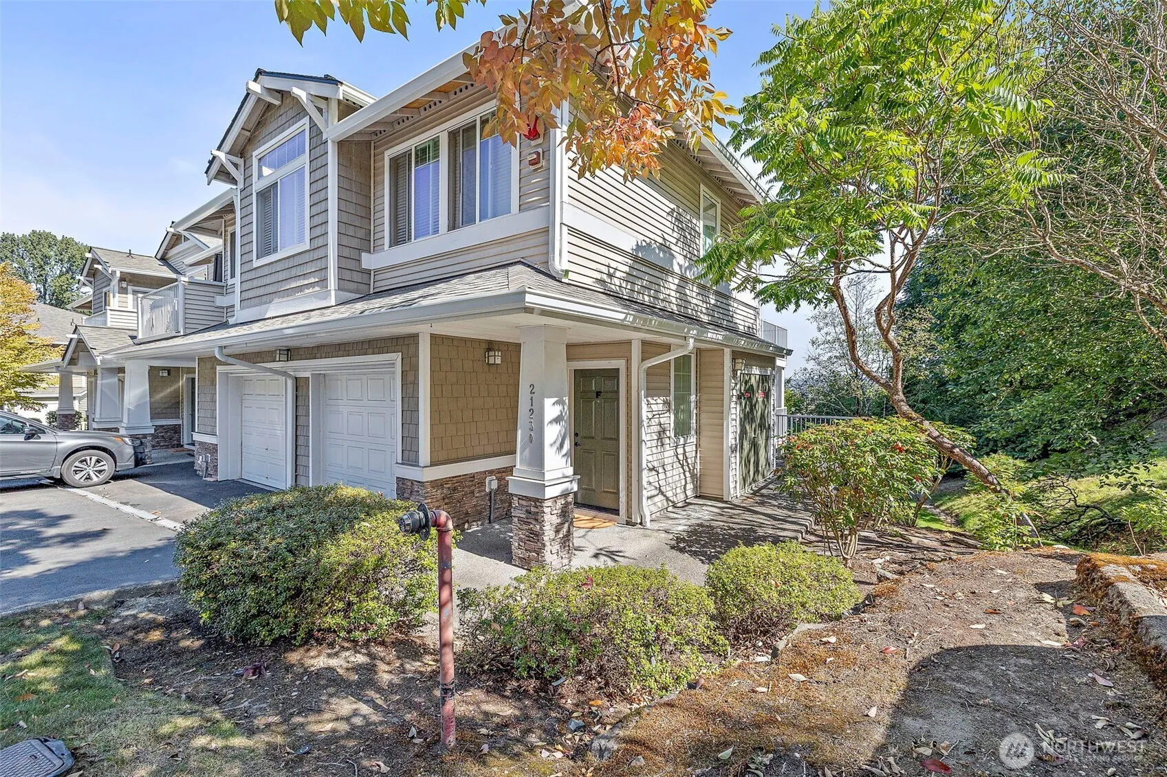 Your dream commute!Only minutes to rapid transit, SeaTac Airport, and downtown Seattle sits this well-managed, cozy wooded community. This desirable no-stairs end unit backs to a peaceful greenbelt and showcases valley and mountain views from nearly every room. Enjoy a bright, open floor plan with cozy fireplace, sunny deck, kitchen featuring stainless steel appliances and direct garage access. Two spacious bedrooms, two full baths, and a full-size washer and dryer included. The primary suite accommodates a king-size bed and includes a large walk-in closet plus a relaxing soaking tub. New roof and gutters, no rental cap, and ample guest parking. A true treehouse sanctuary close to everything!