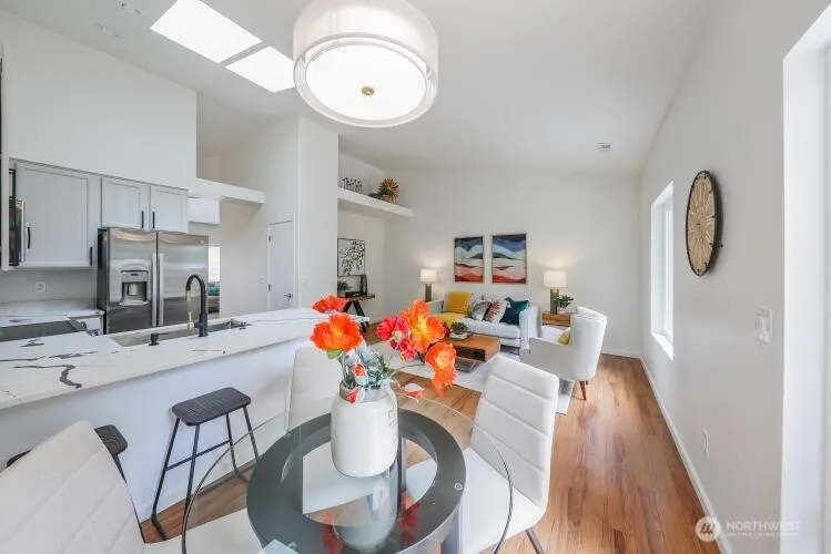 Beautiful remodeled residence on corner lot in a beautiful community setting. New interior paint & rich hardwood flooring flowing seamlessly throughout the entire home. Expansive living room, a dedicated study, and a versatile rec room. At the heart of the home lies the chef’s kitchen, featuring dramatic cathedral ceilings with skylights, gorgeous quartz countertops, pantry, and all-new stainless steel appliances. New washer/dryer. Primary is peaceful retreat w/ updated ensuite bath, dual vanities with quartz counters, and walk-in closet. Mix and mingle in large backyard. Close proximity to lake recreations, shopping, and major employers including Joint Base Lewis-McChord, Amazon, and Boeing. This is it. Now’s the time to make your move!