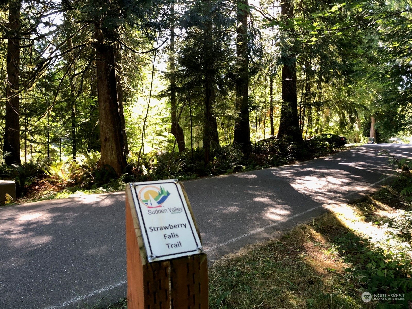 Large, relatively flat property located next to green space in the lakeside and golf course community of Sudden Valley. This property is actually a double lot – with the west 15 feet subdivided off for the benefit of the homeowner on the right. This massive and flat property has views over the green-belt area of Strawberry Falls Trail towards Strawberry Park – one of numerous neighborhood parks located in the Sudden Valley Community. The property has been surveyed, has topography map, and corners are clearly marked. Wonderful spot for a single level home – or any type of home! This property is probably the finest woodland lot that has become available in many years. Critical areas assessment available. Don’t delay on this one!