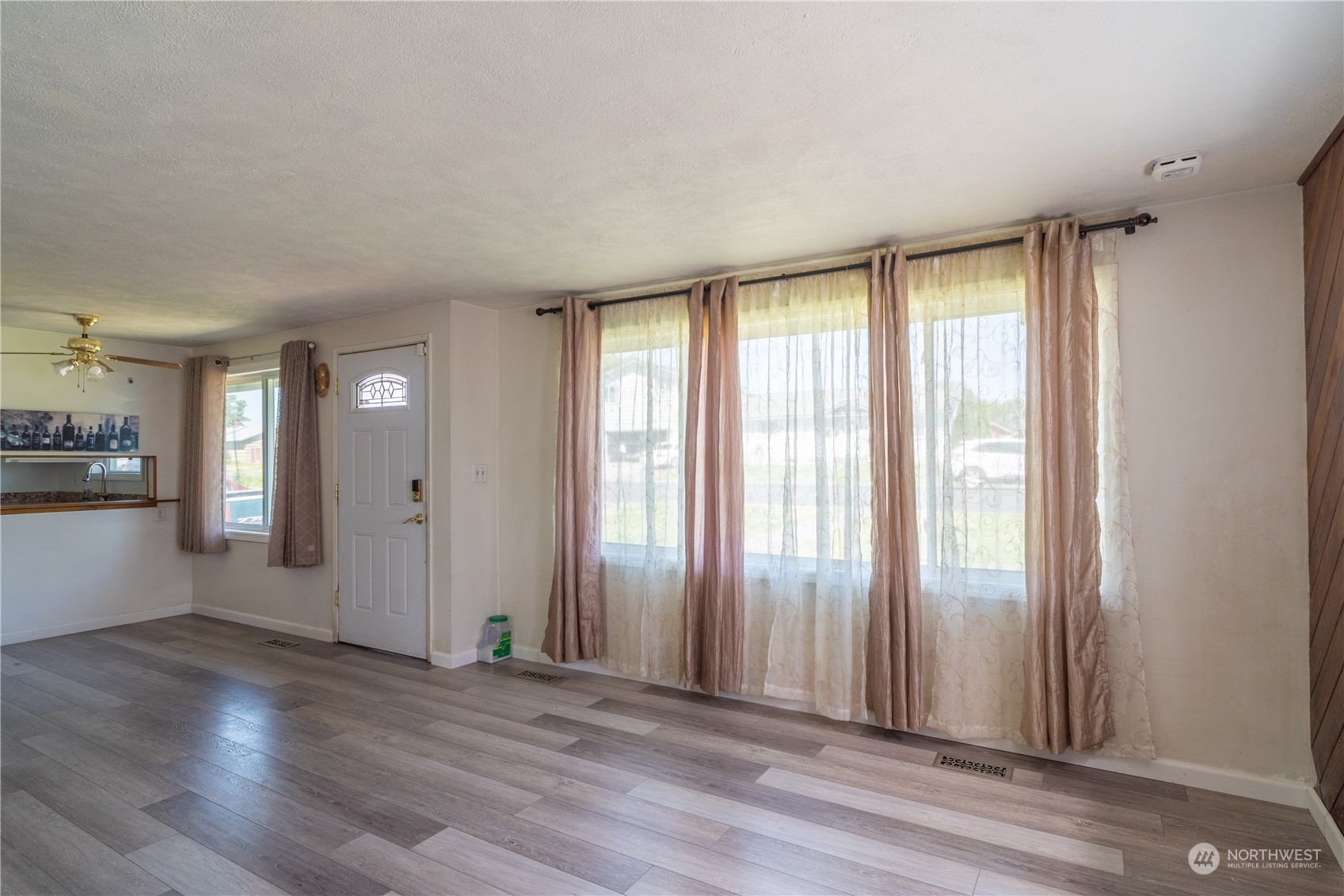 New siding, roof, windows, hot water tank and flooring through out house. You will want to see the rest of this tastefully renovated home with an open floor plan and spacious fenced in yard with a huge, covered patio ideal for entertaining and enjoying the evenings in the hot tub. Inside you will find 3 bedrooms, 1 ¾ baths, including an expanded primary suite with ample closet space & a spa-like bathroom. This home is centrally located and close to shopping. With 1426 square feet you will have plenty of space. The large backyard storage shed is wired for power and might make the perfect workshop or additional entertaining space.