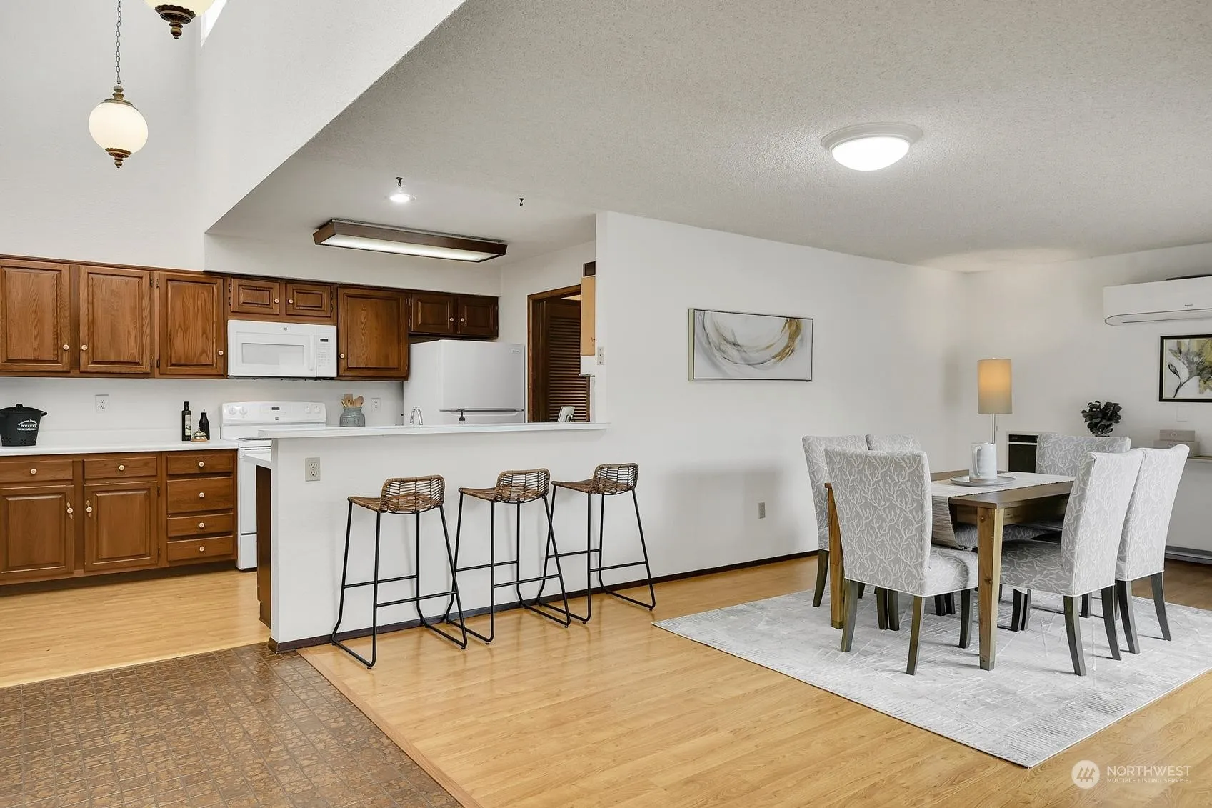 Experience single-level living in this spacious 2-bed Richmond Beach condo, ideally located just blocks from Saltwater Park. The inviting layout features a private 2-car garage & large, fenced courtyard entrance. Over 1,500 sq ft of living space & vaulted ceilings create a bright & airy atmosphere. Formal living space seamlessly connects to sunroom & fully fenced backyard, complete w/ raised garden beds. Open kitchen & family room make entertaining a breeze. Both beds spacious w/ the primary offering tranquil backyard views & French doors to the sunroom. Abundant storage, a garage workbench. NEW carpet. Community amenities include a pool & secured gated entry.