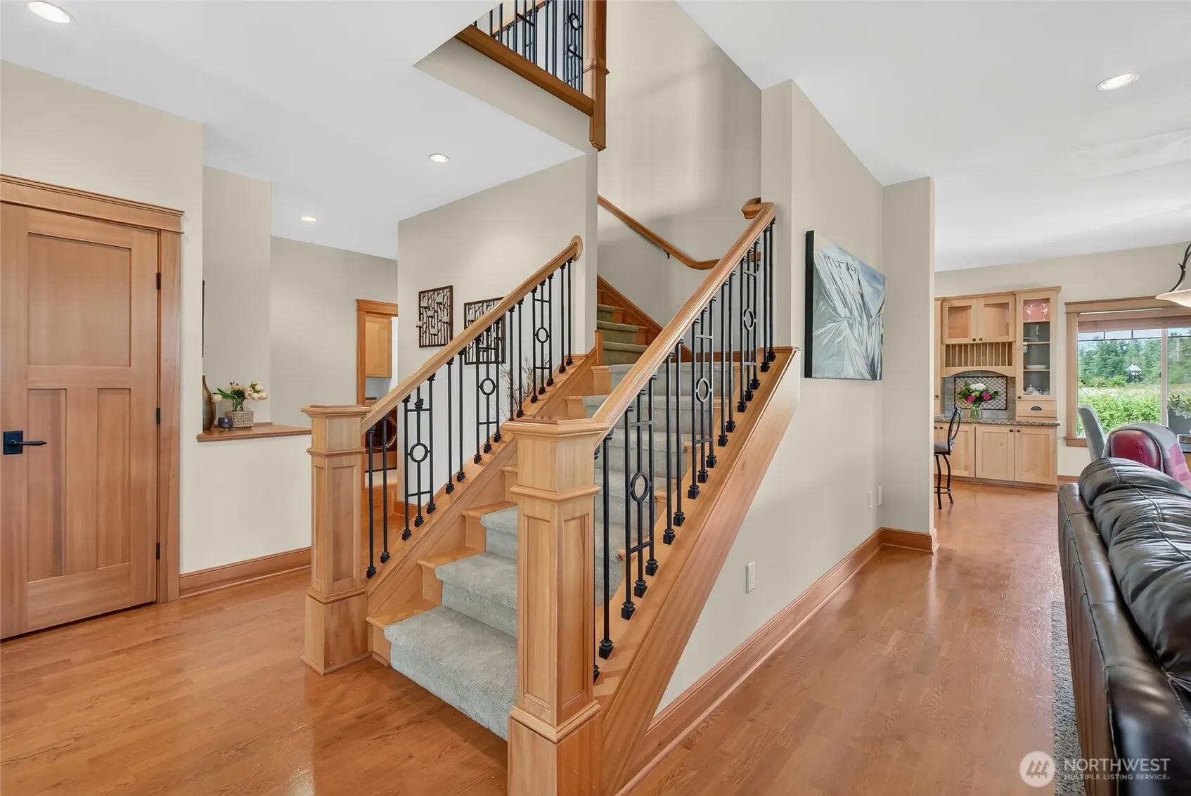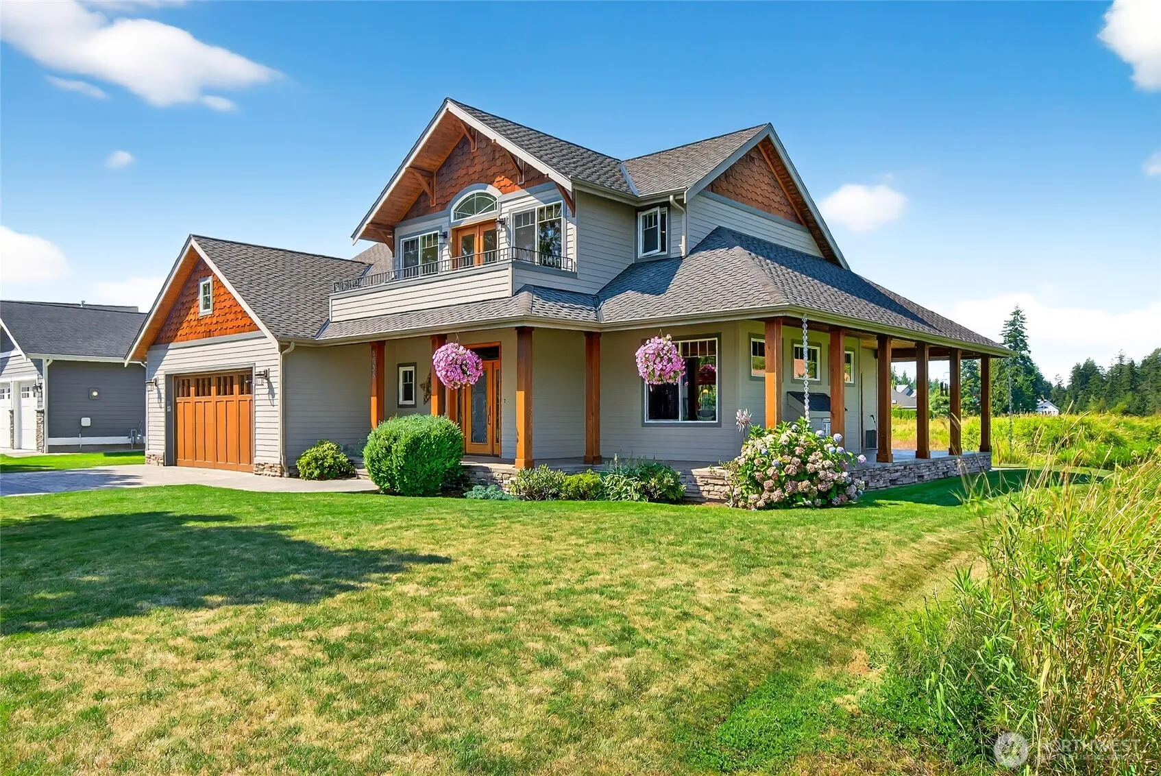 Custom built by well respected builder, JWR. This beautiful home features solid woodwork, premium finishes, unique leaded glass doors and details, large welcoming entry, high ceilings, quality craftsmanship. Primary owner’s suite on main level with lots of natural light, large bathroom with soaker tub, tiled shower and private water closet. Beautiful kitchen w/ granite counters, stainless appliances, travertine backsplash, induction cooking, skylights and views! 2 ample sized bedrooms upstairs, full bath and sunny loft/flex area space with balcony for stargazing. Wrap around covered porch lends itself to the best sunset views and entertaining than any of the surrounding homes. End unit property alongside natural protected growth area.