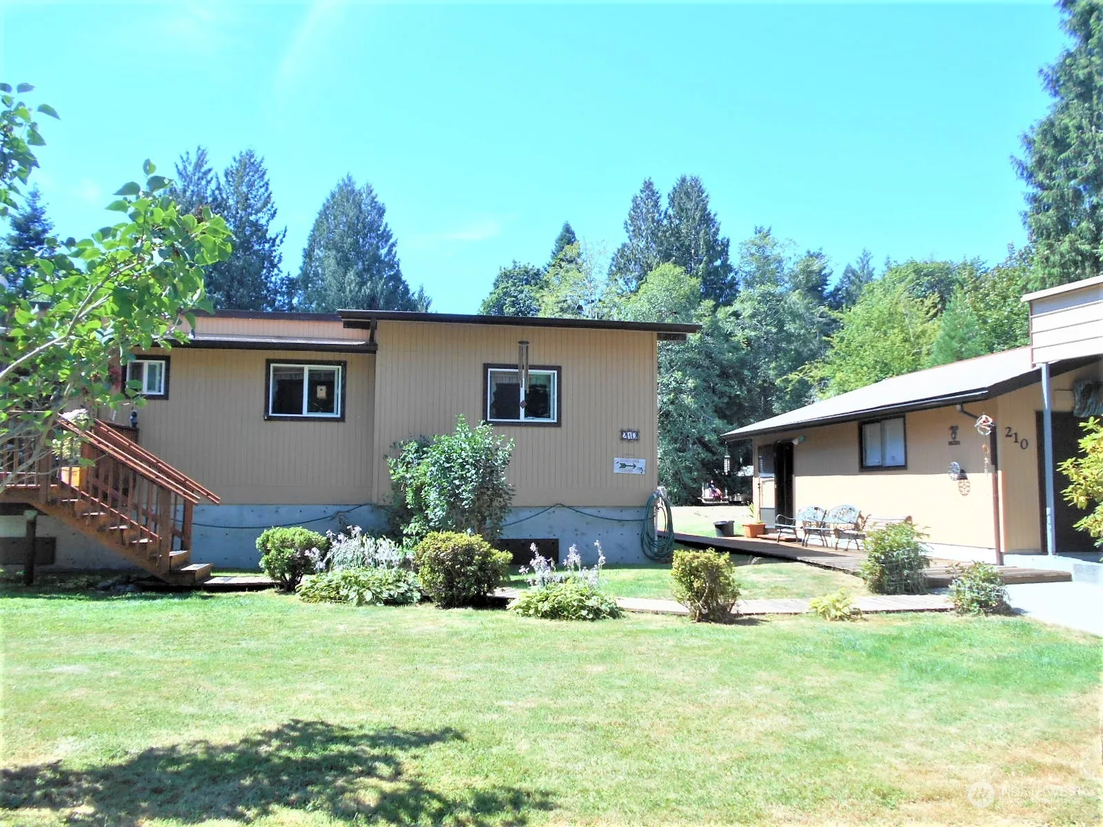 Riverfront home w/view of Olympic Mountians sits on over 1/2 acre w/140ft of Duckabush river frontage. Cozy living room, 2 bedrooms, bath & entry. Property includes 3 lots, (3 separate parcels), 2 addresses. Two, 2 bedroom septic systems, (one for home & one for garage/utility area). Grounds include established landscaping, wooden walkways, fire pit & 2 sheds for storage. 2 car garage & metal carport for RV parking. Back end of garage has a separate room with washer/dryer, extra frig and freezer, bathroom w/toilet. sink & shower. Enjoy this one of a kind, well built & well kept home. Neighborhood allows Vacation rentals. See Salmon spawn in the fall, ducks & birds all year round & frequent visits from elk. Must see!