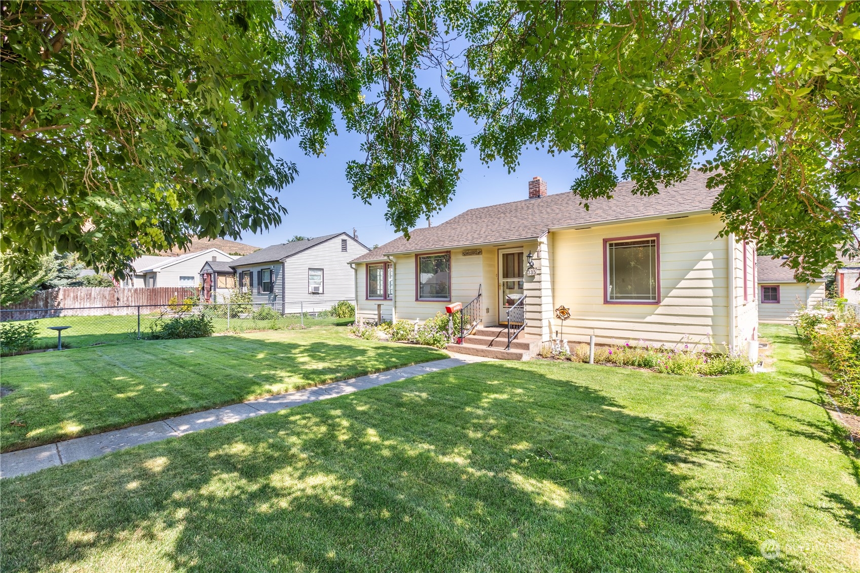Adorable 3 bed 2 bath home with finished basement and lots of updates! Newer roof, Open floor plan on main living with laminated floors, laminated counter tops in kitchen, all appliances stay, Wood burning fireplace in basement. Main bath fully remodeled,! Basement includes a room perfect for storage or crafts, utility room, two bedrooms, 3/4 bath, backyard include back patio, garden space, mature landscape and underground sprinklers system! Freezer in basement stay. dishwasher is portable, Property sold as is. Is a must see!