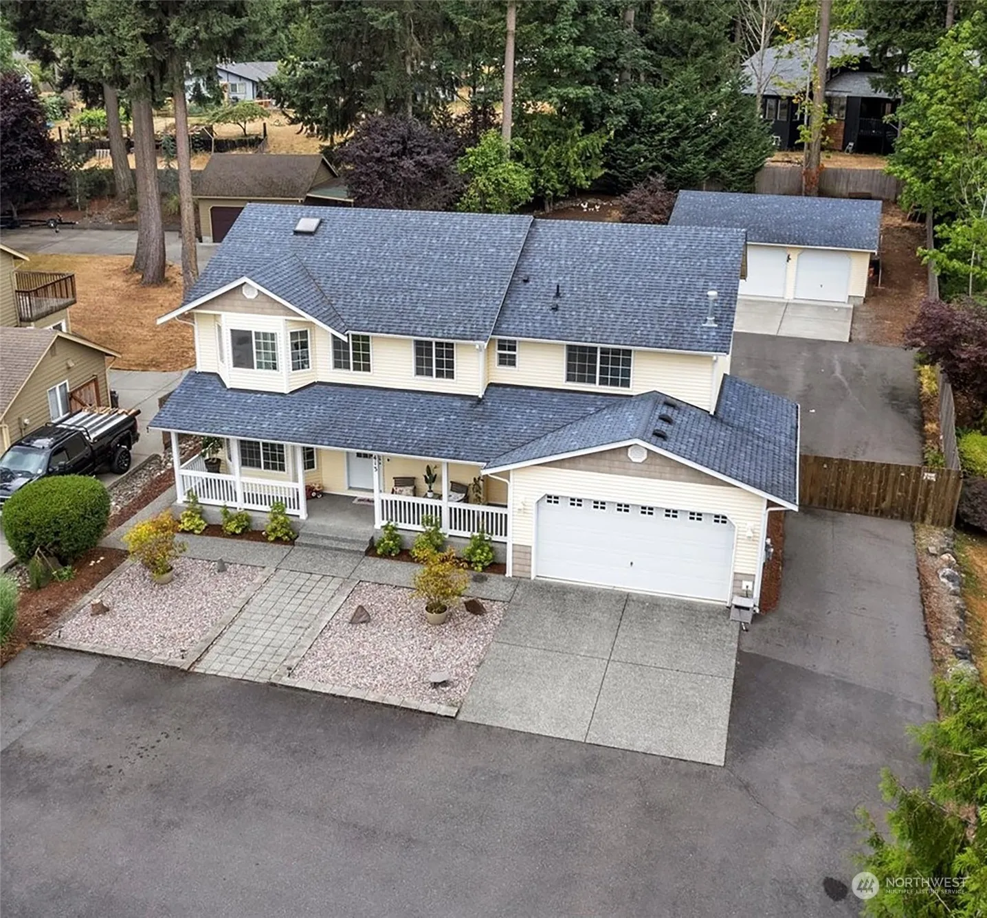 You shouldn’t have to sacrifice to live on the lake and now you don’t have to! LAKEFRONT+HUGE LOT+SIZE+SHOP! Enjoy 55 +/- of Lake Tapps waterfront with newer composite dock and tons of space to entertain and play, while also enjoying .46 of an acre with RV/Boat parking AND a SHOP! Yes, a SHOP! Home features 2400 sqft and offers an inviting and open main floor living space, while upstairs features a HUGE primary suite with private deck. 3 bedrooms + loft and upstairs and dual laundry access both upstairs and in garage—perfect for all those towels from a day of swimming in the lake. Right down the road from Allen Yorke Park and walk to Emerald Hills Elem. BONUS: this property ALSO has rights and access to the the Debra Jane Lake amenities!