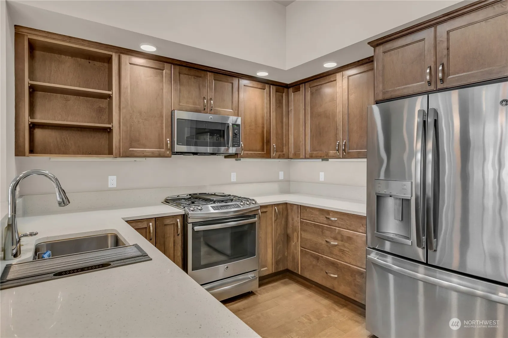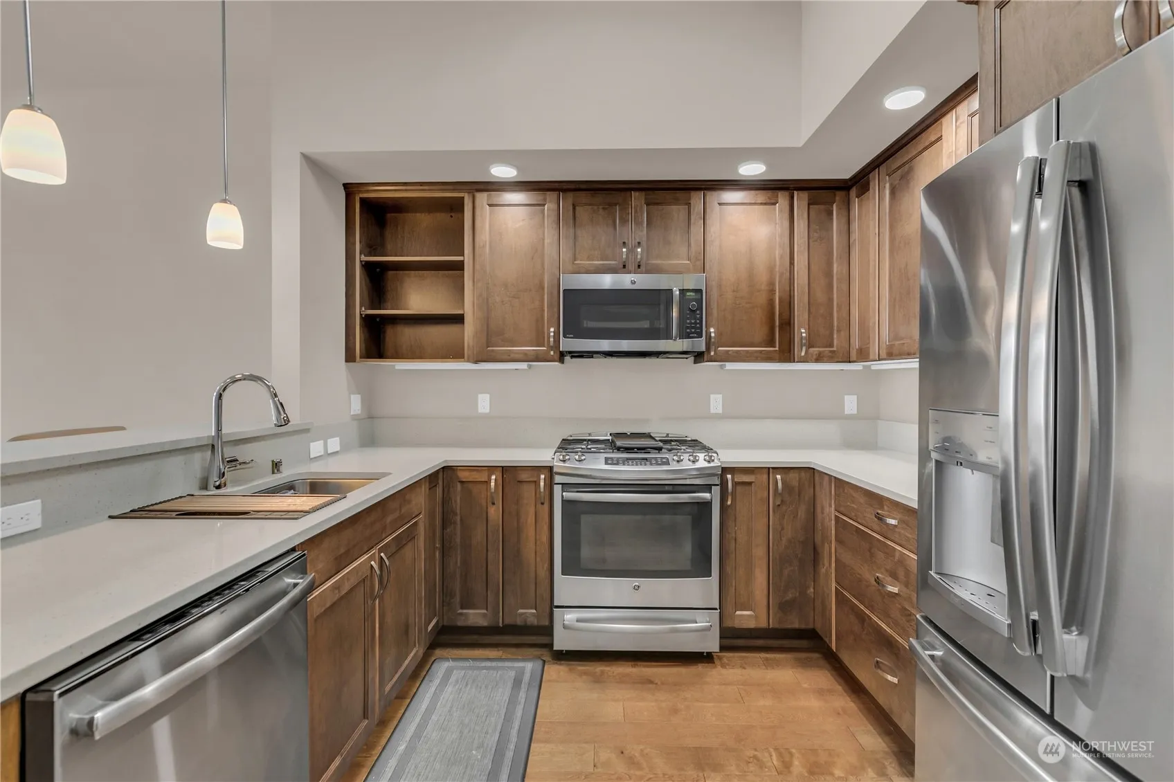 Welcome home to this beautiful, 3 bed/2 bath Point Ruston condo! Featuring high ceilings, a gas fireplace, hardwood floors, quartz counter tops and stainless steel appliances (all stay)! The primary suite has a large, walk-in closet, it’s own private bath, and deck access! Enjoy the view from your deck overlooking Commencement Bay & Point Ruston’s Grand Plaza. Two parking spaces in secure garage & storage unit are also included along with the condo association room on the 5th floor! Close to everything Point Ruston has to offer as well as Pt Defiance park!