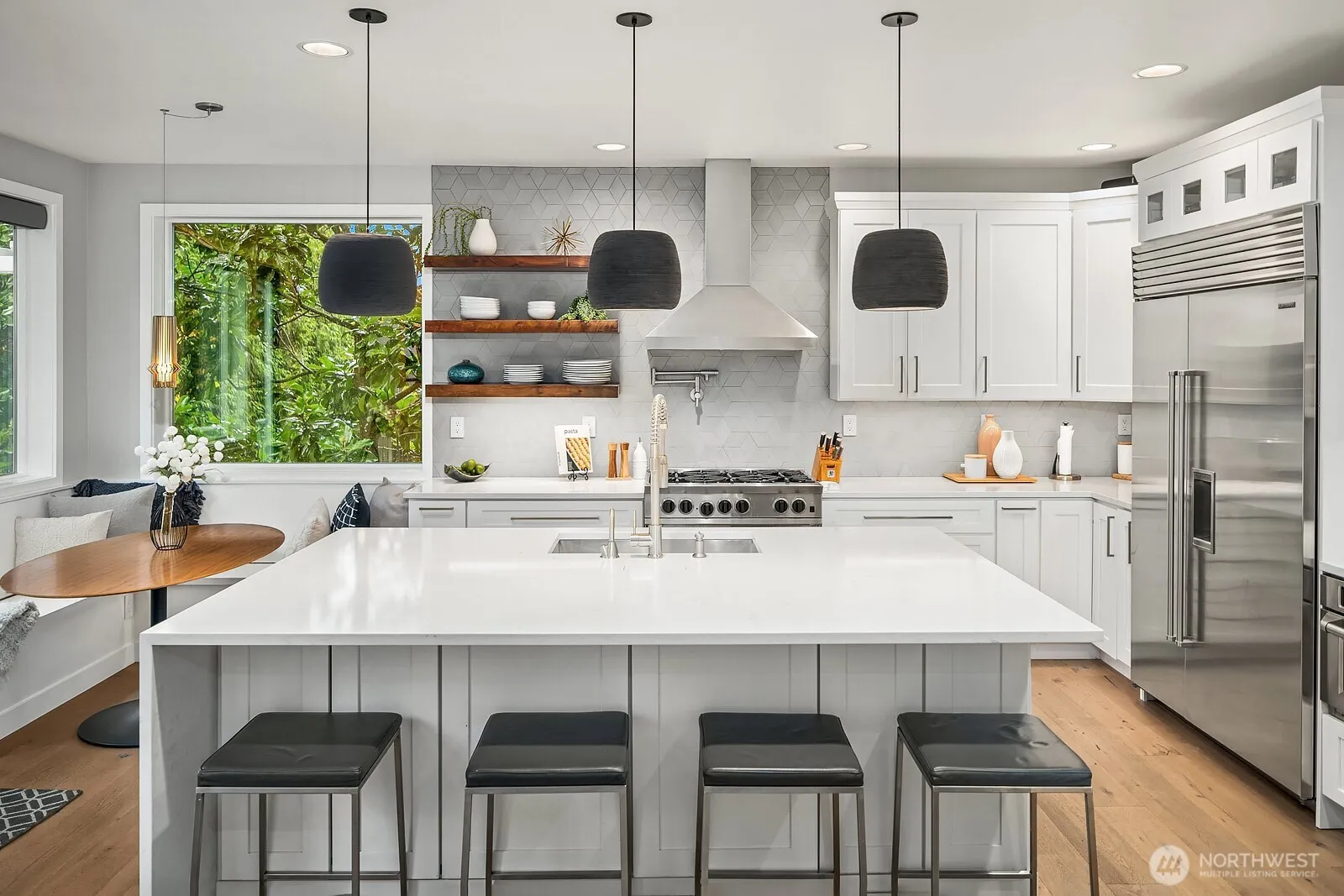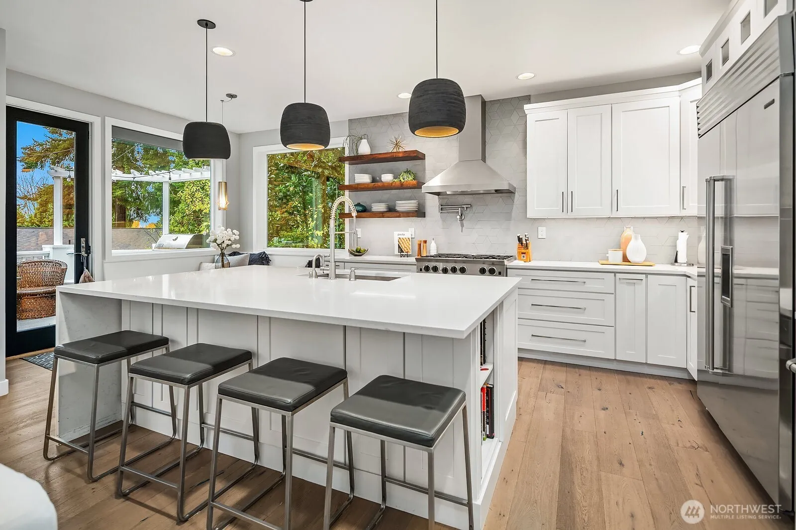 Beautifully remodeled Kirkland home on a quiet dead-end street, offering mountain views & stunning sunsets. The dramatic 2-story entry welcomes you into a spacious layout w/ 5 bedrooms, 4.25 baths, an office, & an upper-level loft/flex area. The chef’s kitchen has been thoughtfully redesigned w/ a banquet-style dining nook, large island, & premium finishes.Enjoy gorgeous hardwood floors, high ceilings, custom built-ins, & a generous entertainment deck overlooking the fully fenced backyard. The home also includes a legal ADU w/ its own private entrance—ideal for nanny quarters, or rental income. A separate bonus room and wine cellar complete the basement level. Lake WA schools, close to DT Kirkland, easy access to 405. An exceptional home!