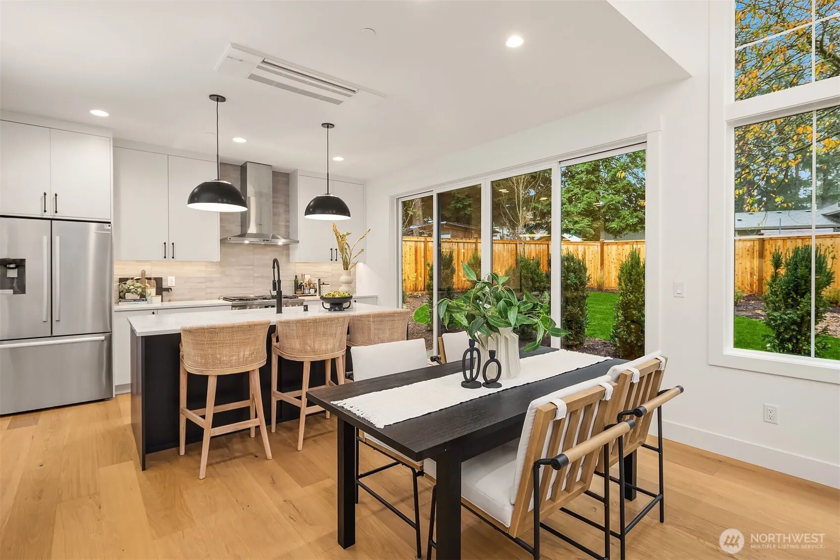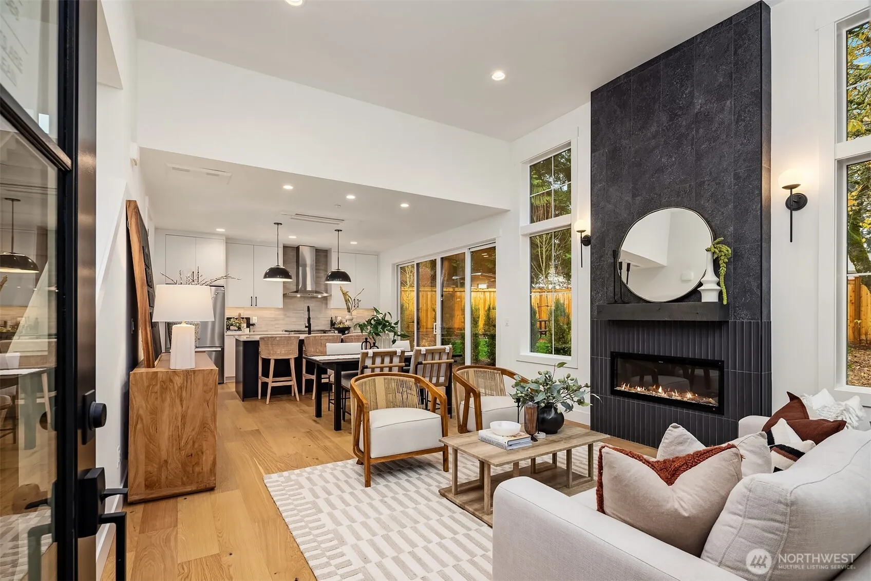 Welcome to this thoughtfully designed new construction home in Kirkland’s North Rose Hill neighborhood. Unique layout with main-floor primary suite creates options for comfortable living. Luxurious high ceilings complement an open-concept kitchen, living, & dining area with access to a generous park-like yard. Powder bath on main & dining area make this home great for guests. Cozy up to the fireplace and enjoy plentiful natural light from abundant windows. Upstairs, find two additional large bedrooms, full bath, plus a versatile bonus area ideal for den, home gym, or work from home space. Enjoy an attached one-car garage and additional designated parking spot, all just moments from downtown Kirkland, plus easy connections to I-405 and 520.