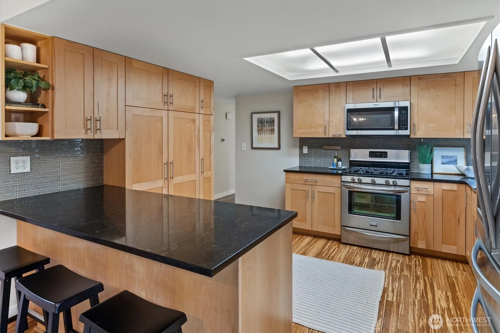 Meticulously remodeled 4 BR 3 BTH home combining modern elegance with unmatched comfort. Large, open kitchen is a chef’s dream, featuring stainless steel appliances. The kitchen flows seamlessly into the formal dining room, creating an inviting space for gatherings. The main level hosts 3 well-appointed bedrooms, including a lavish primary suite that is complete with a luxurious 3/4 bath & spacious walk-in closet. Daylight lower level reveals a captivating rec-room, boasting polished concrete floors & gas fireplace—a perfect setting for relaxation & entertainment. Central AC, ensuring comfort throughout the seasons. Huge level lot, embraced by a fenced backyard & Trex deck. 2 car garage. Only minutes to downtown Kirkland. #1 school cluster!